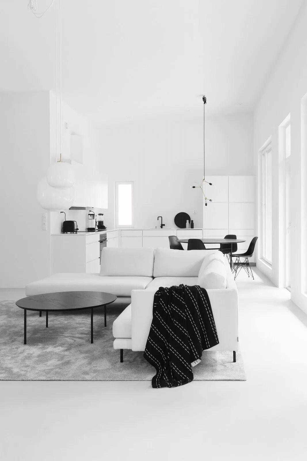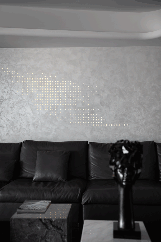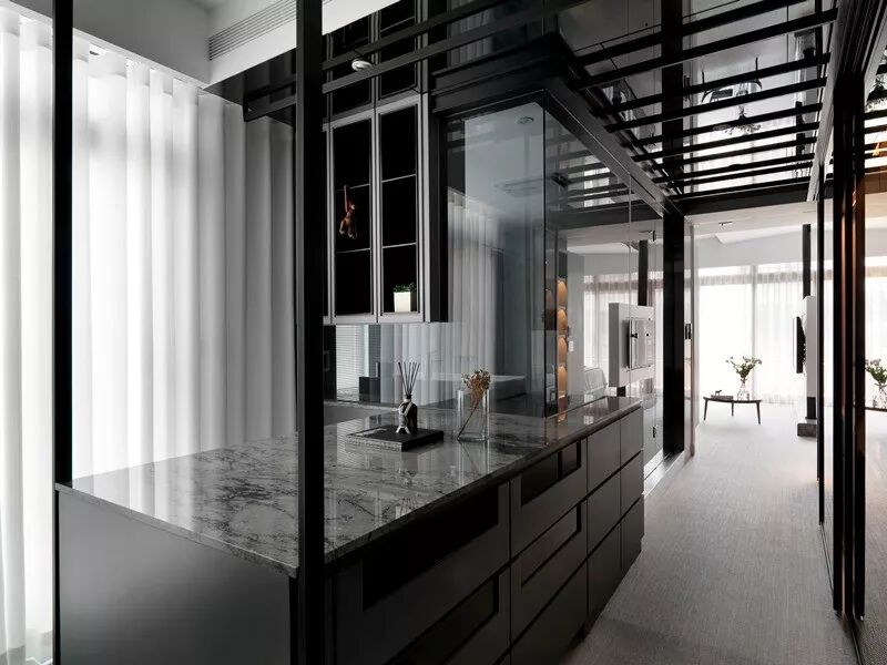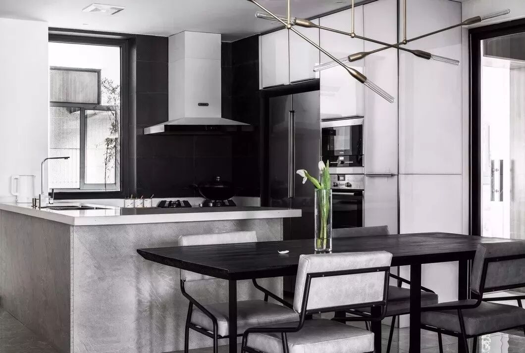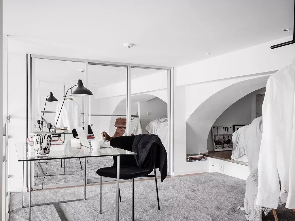 将一抹黑置入纯白空间,无疑是点睛一笔。只需要一方桌、一把椅、任意一件纯黑的饰物,就能让空间的生动感与稳重感矛盾共生。一缕淡淡的从容之气悠然飘荡,这抹黑便是“始作俑者”。