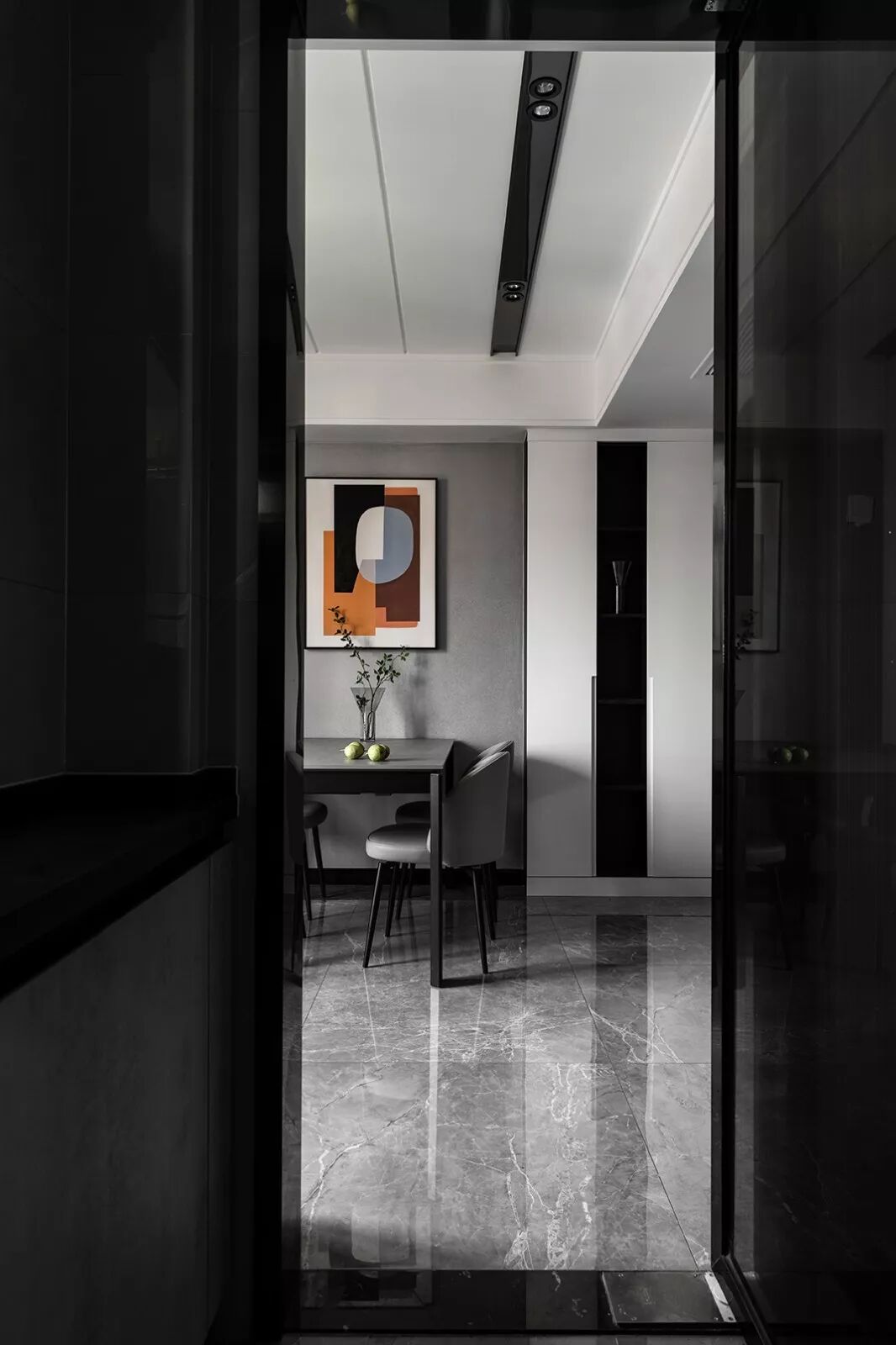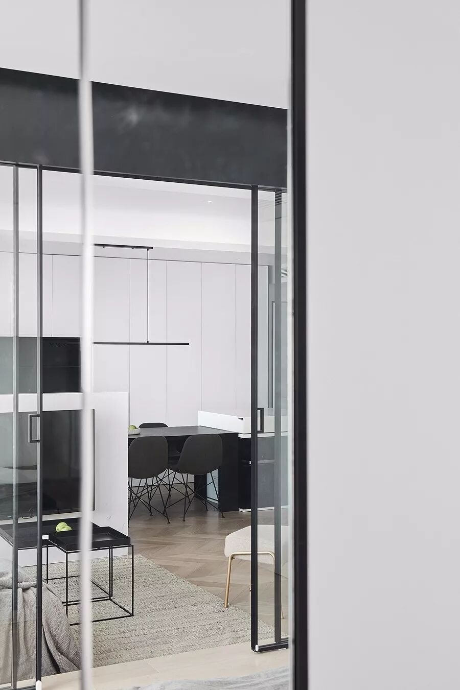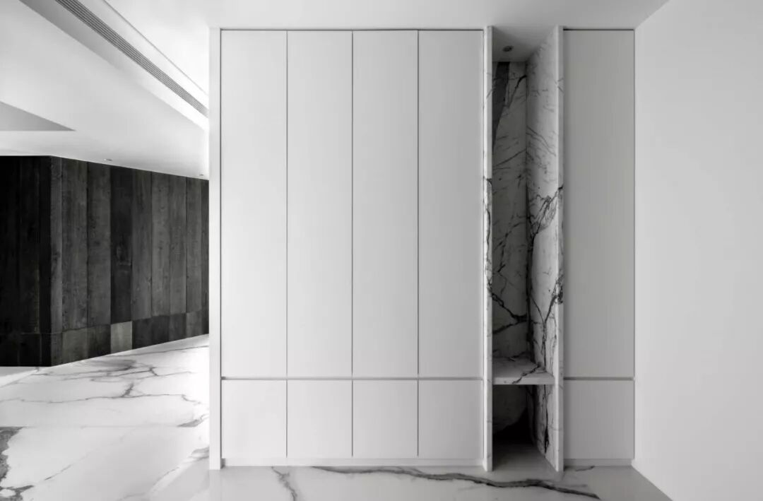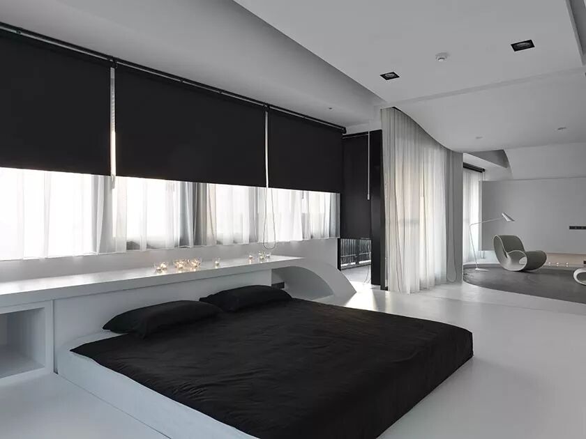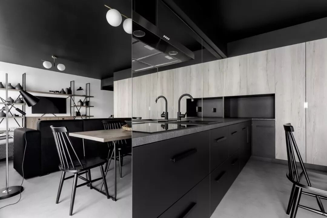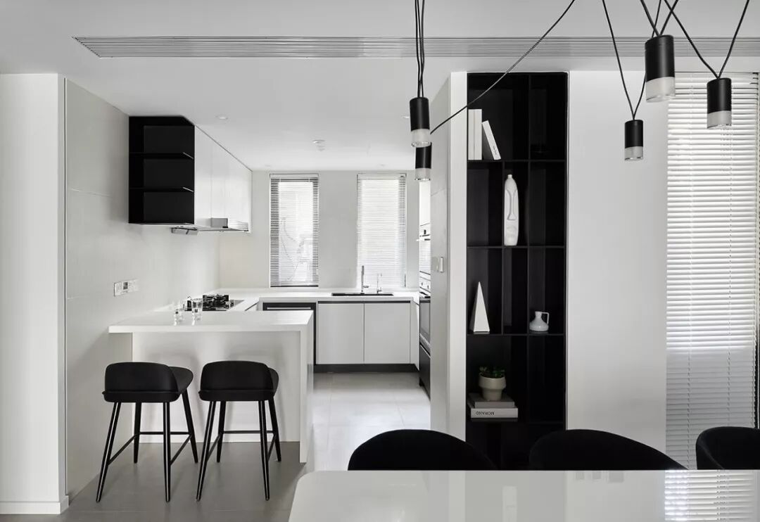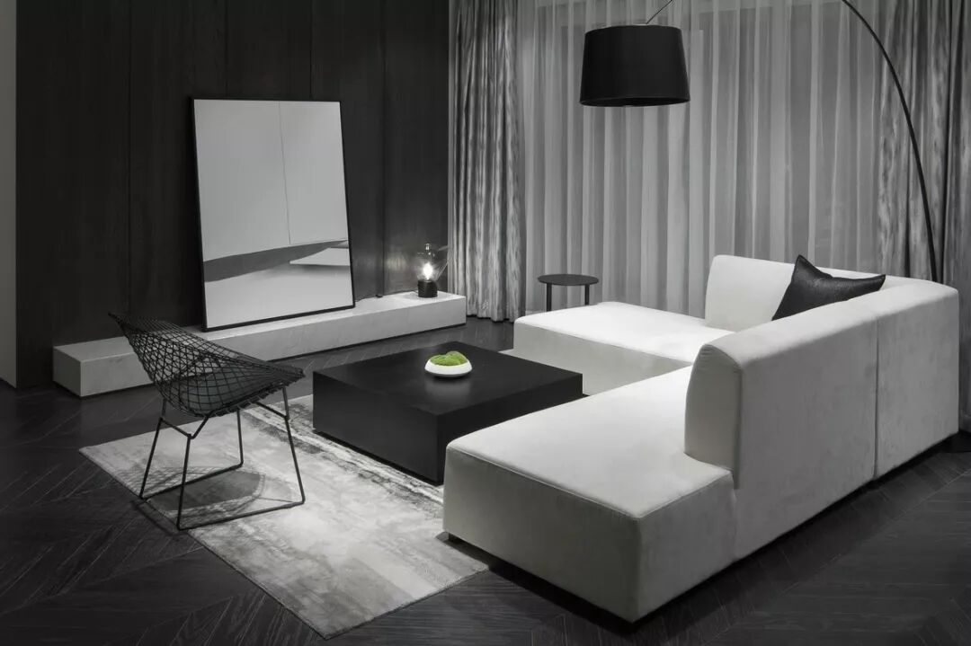 墙面的黑白对比,是最简单直接的色彩配合方式。置身其中,世界非黑即白,纯粹又讨喜,沉稳而冷静的居室环境,让人忘却世间一切光怪陆离,只专注于当下难得的舒适静谧。