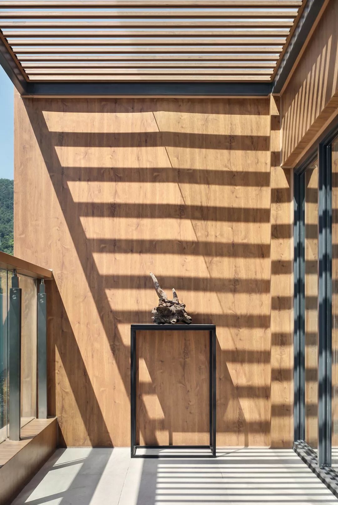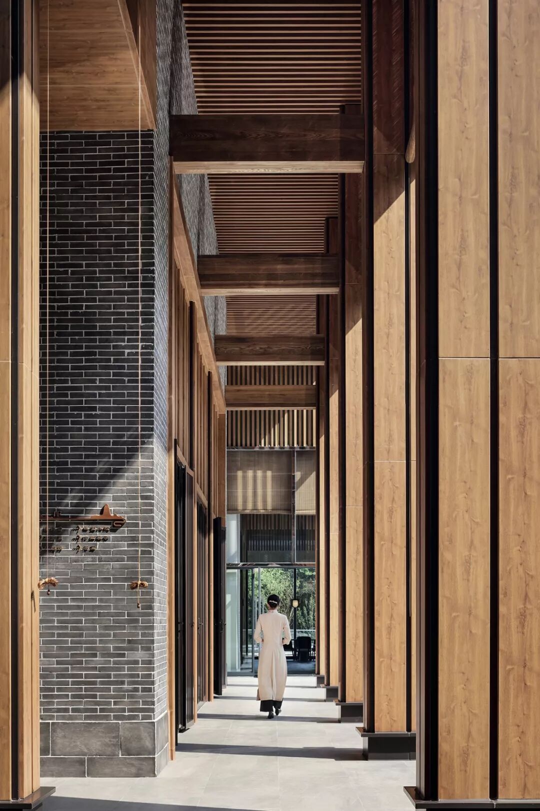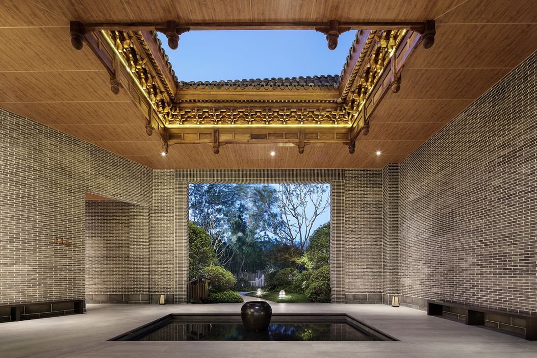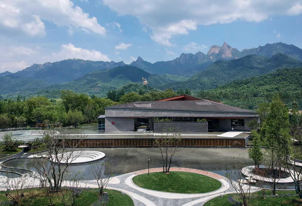 建筑以现代手法融合地域性材料,道法自然,以山峦的走势起笔,于大庭小院落笔,起伏由心,握山形,逐水意,绘禅魂,于一方天地中得以静心。
