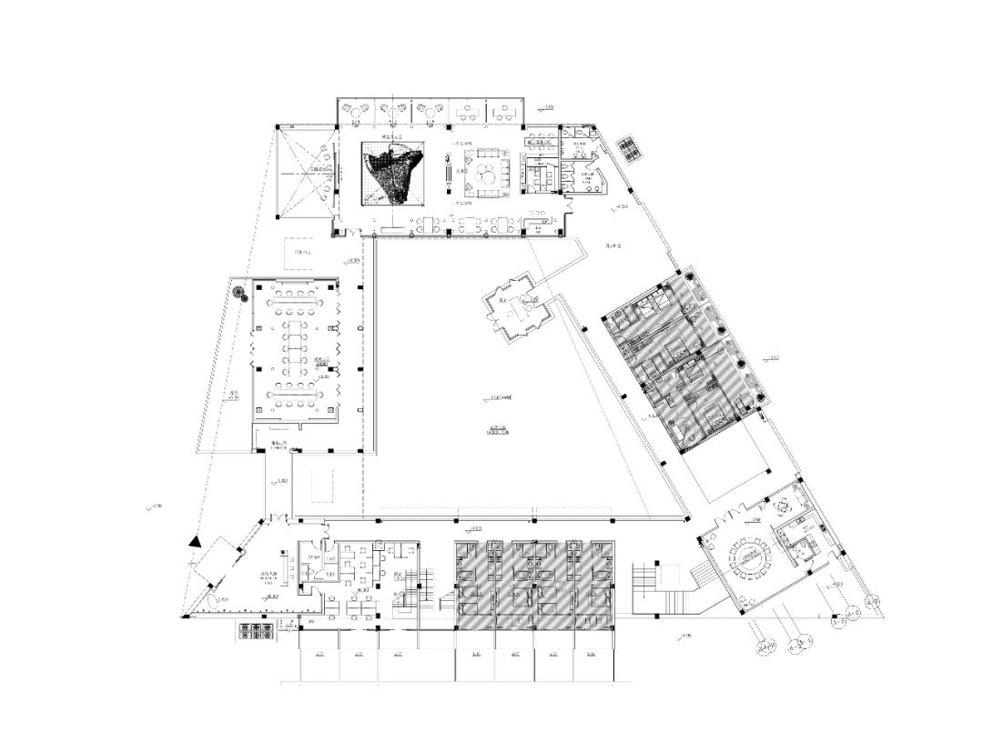 休闲洽谈区,作为休息和交流沟通的场所,“倾听”是这方空间的主题,故将其定义为“耳根”所在。设计师致力于通过空间大小的平衡设定和细节的精心布局赋予这方空间最为适宜的倾听环境。