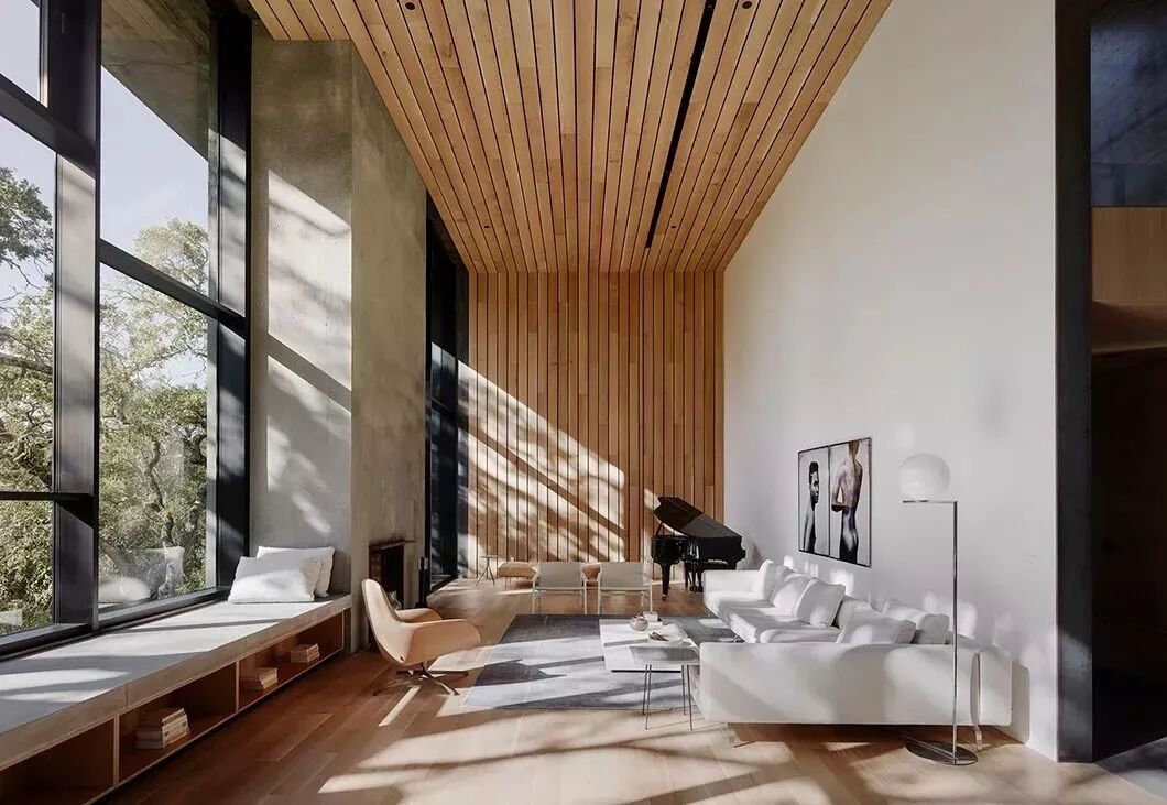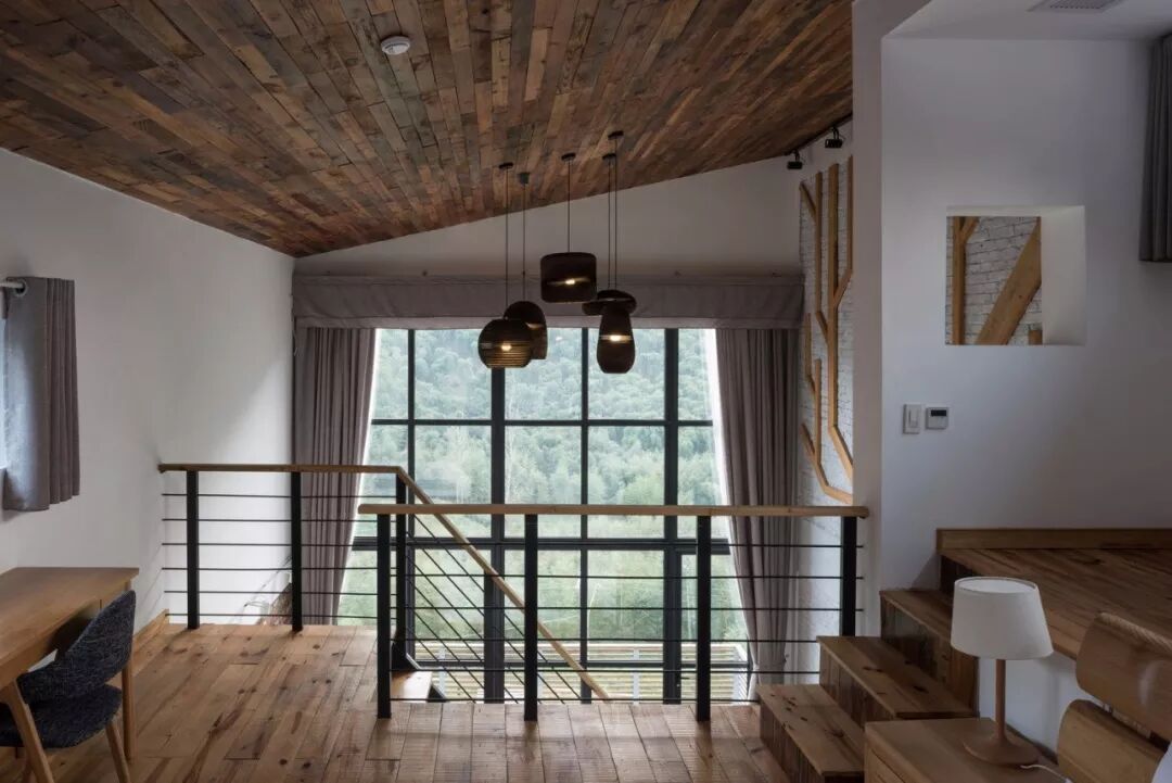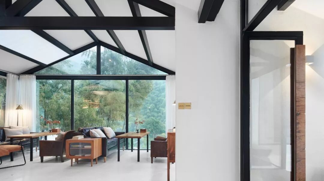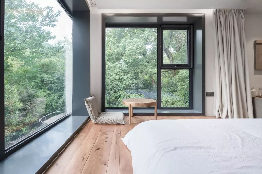 如果室外风景够美,可以装一面落地玻璃窗,沟通内外,与自然对话。一窗之隔,文明与自然的边界被无限模糊,户外的风景浸润整个室内空间,“野”味肆意。