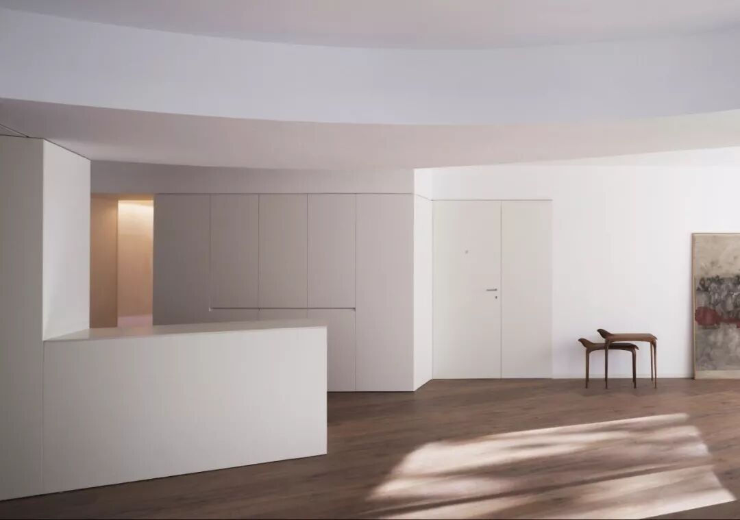 入户门厅承担迎来送往的作用,是家最初最直观的感受区。整整齐齐的物品规置,暗示最精确的生活分寸;洁净舒适的空间感觉,彰显最认真的生活态度。