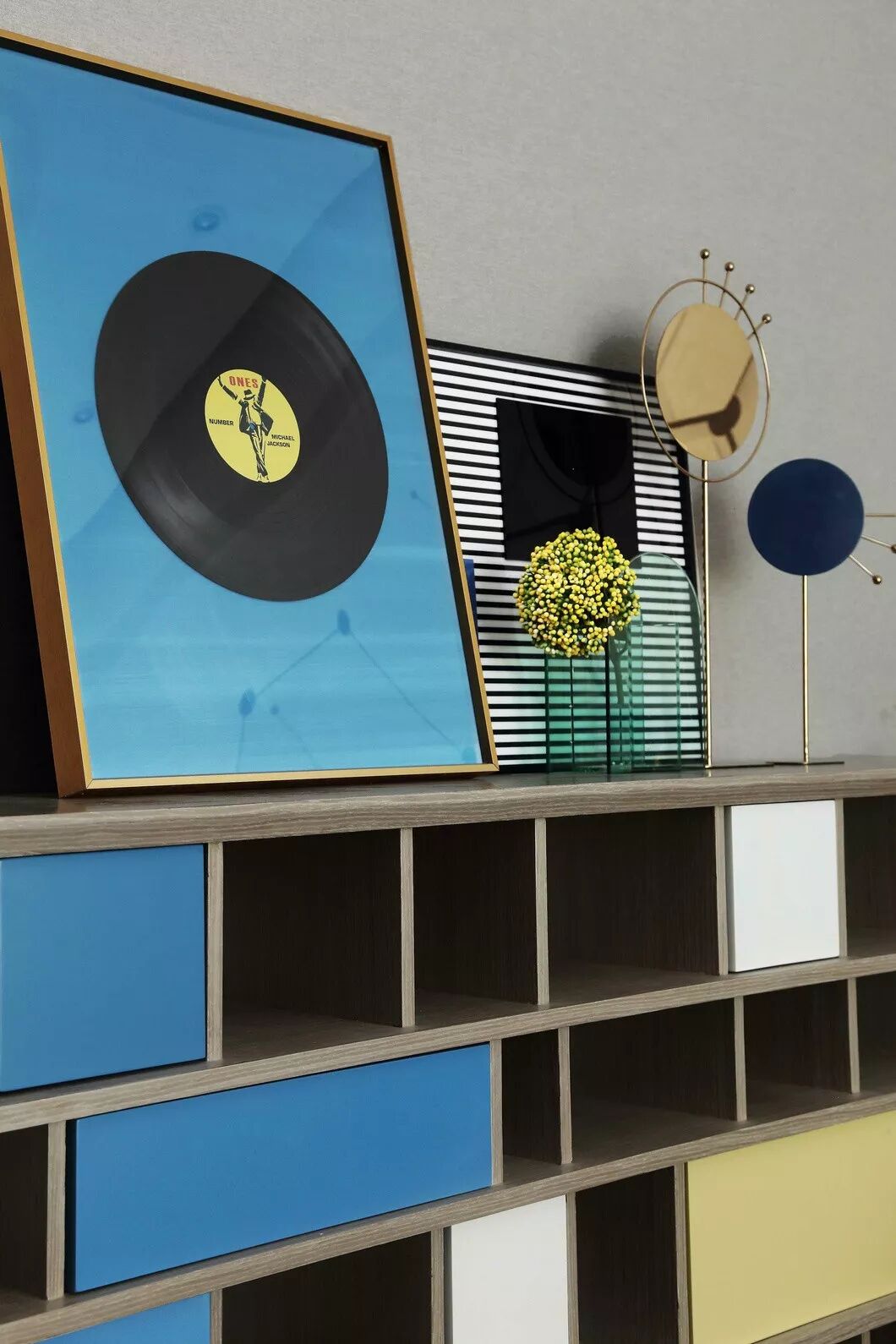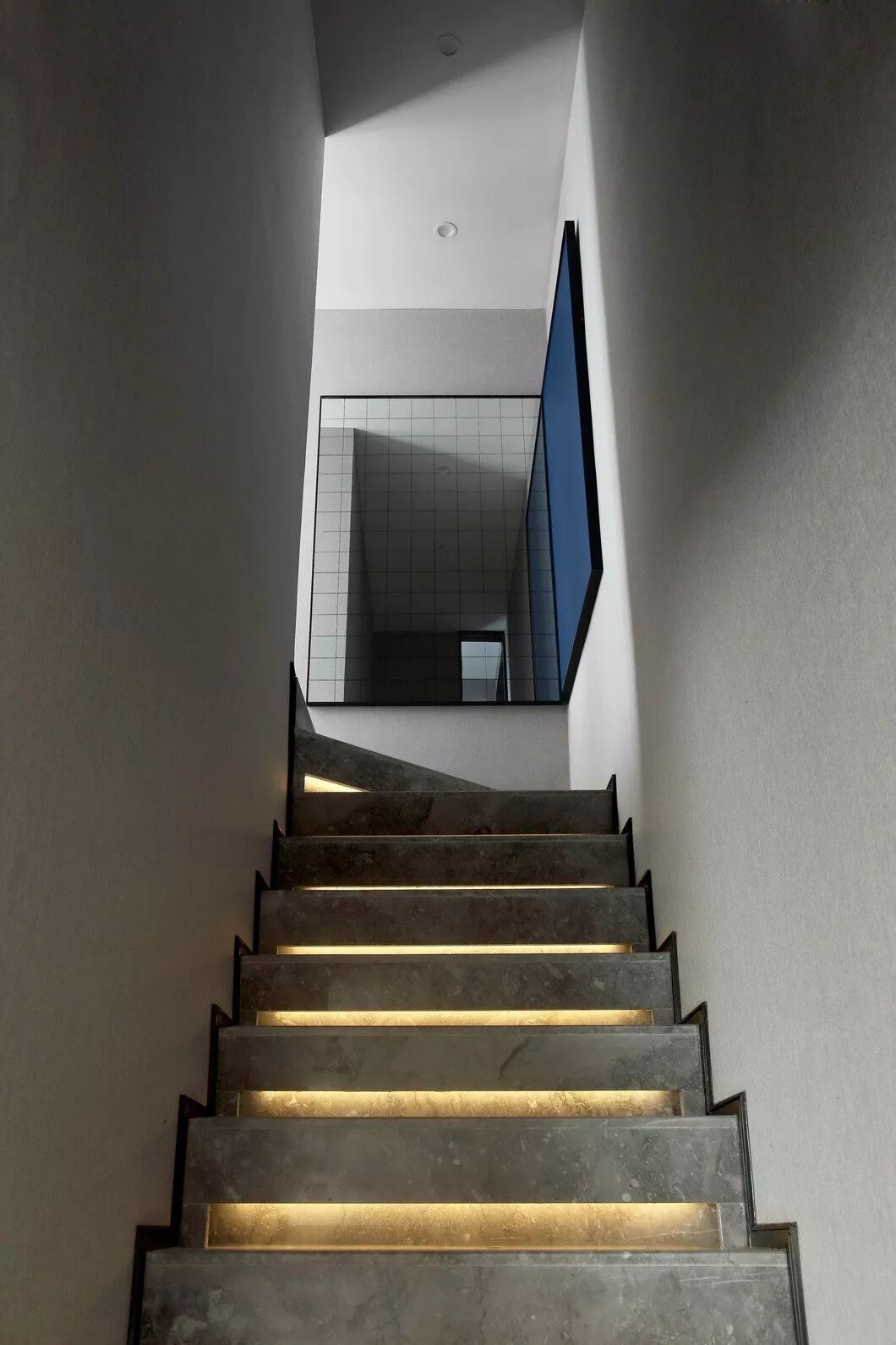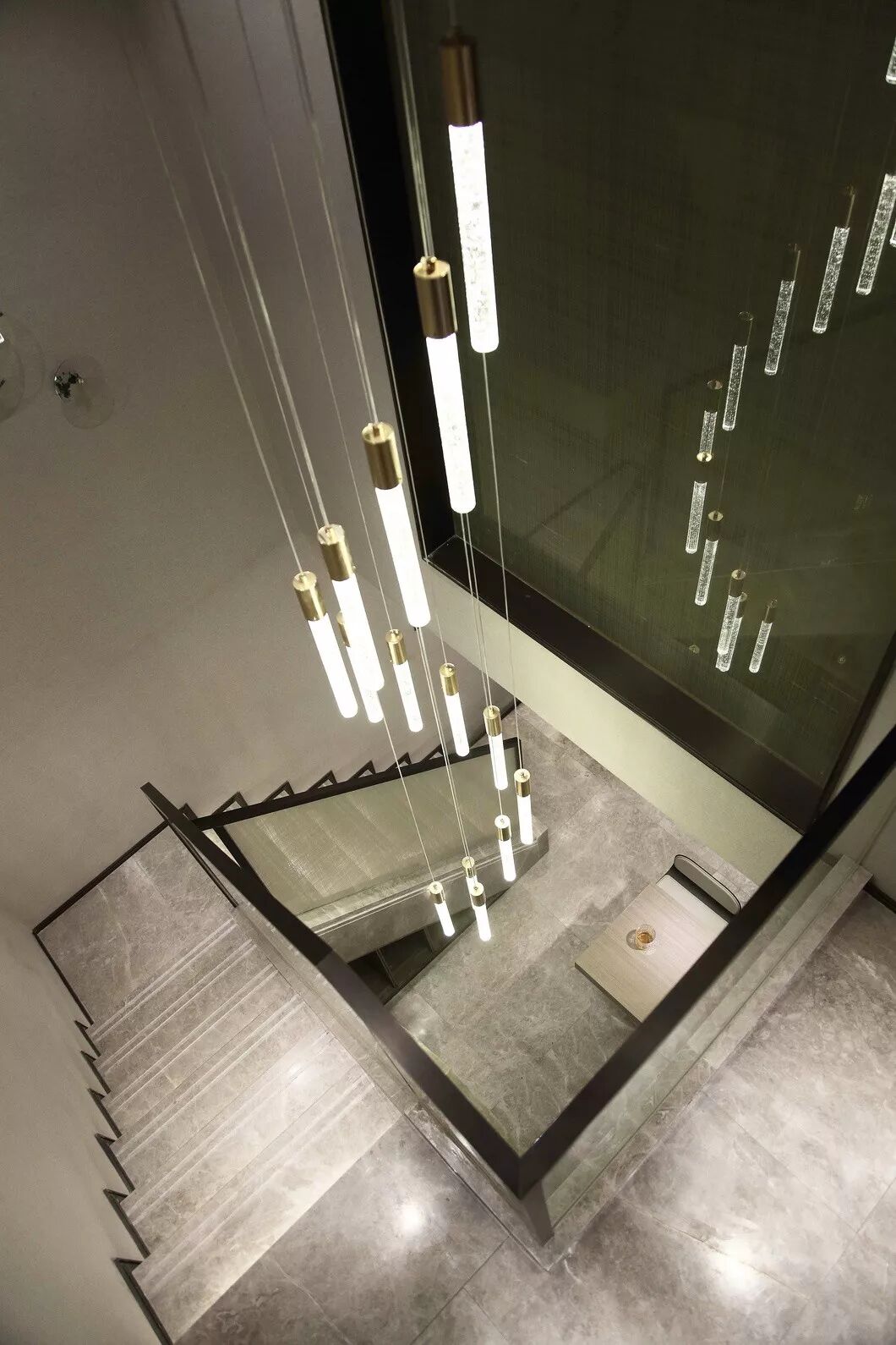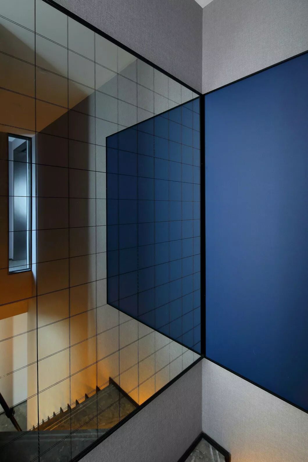 楼梯间以画作与装置艺术的结合成为点晴之笔,以新颖的题材和手法,极简主义的语言,通过光线、颜色和空间的共同关系,表现出艺术与人居的和谐。