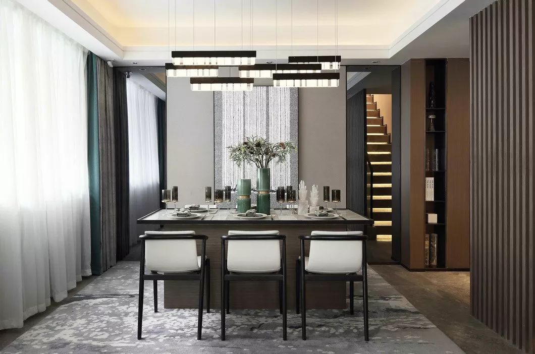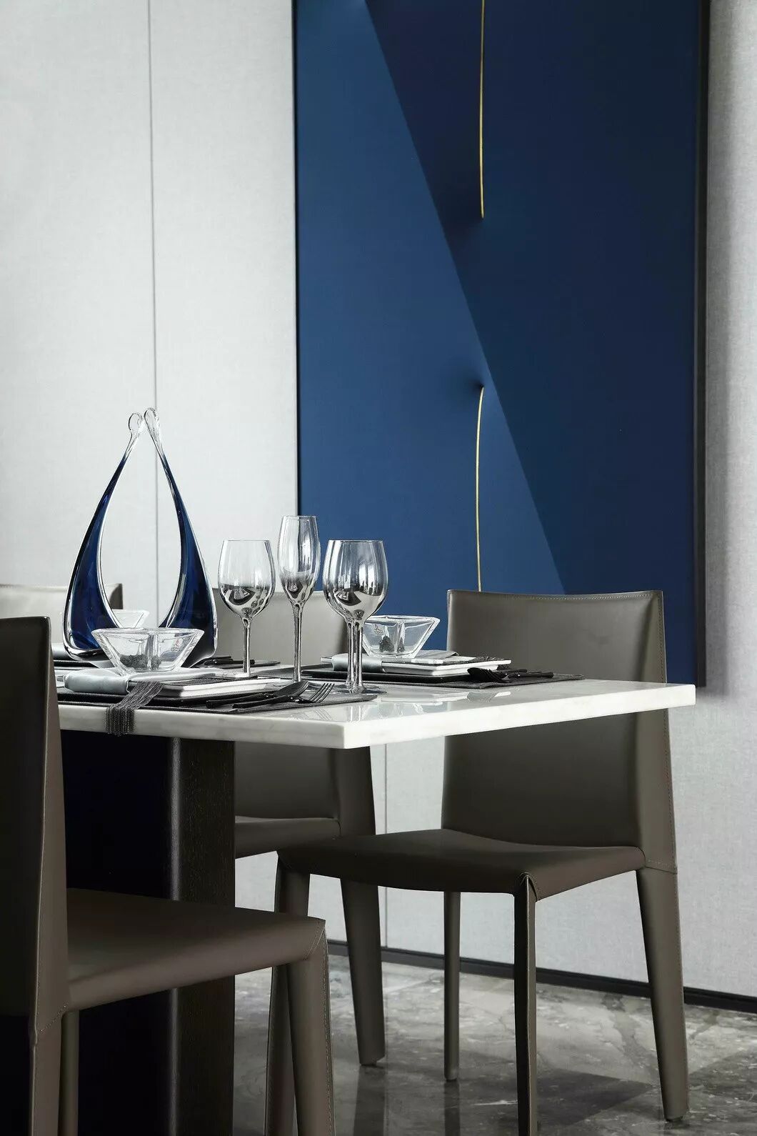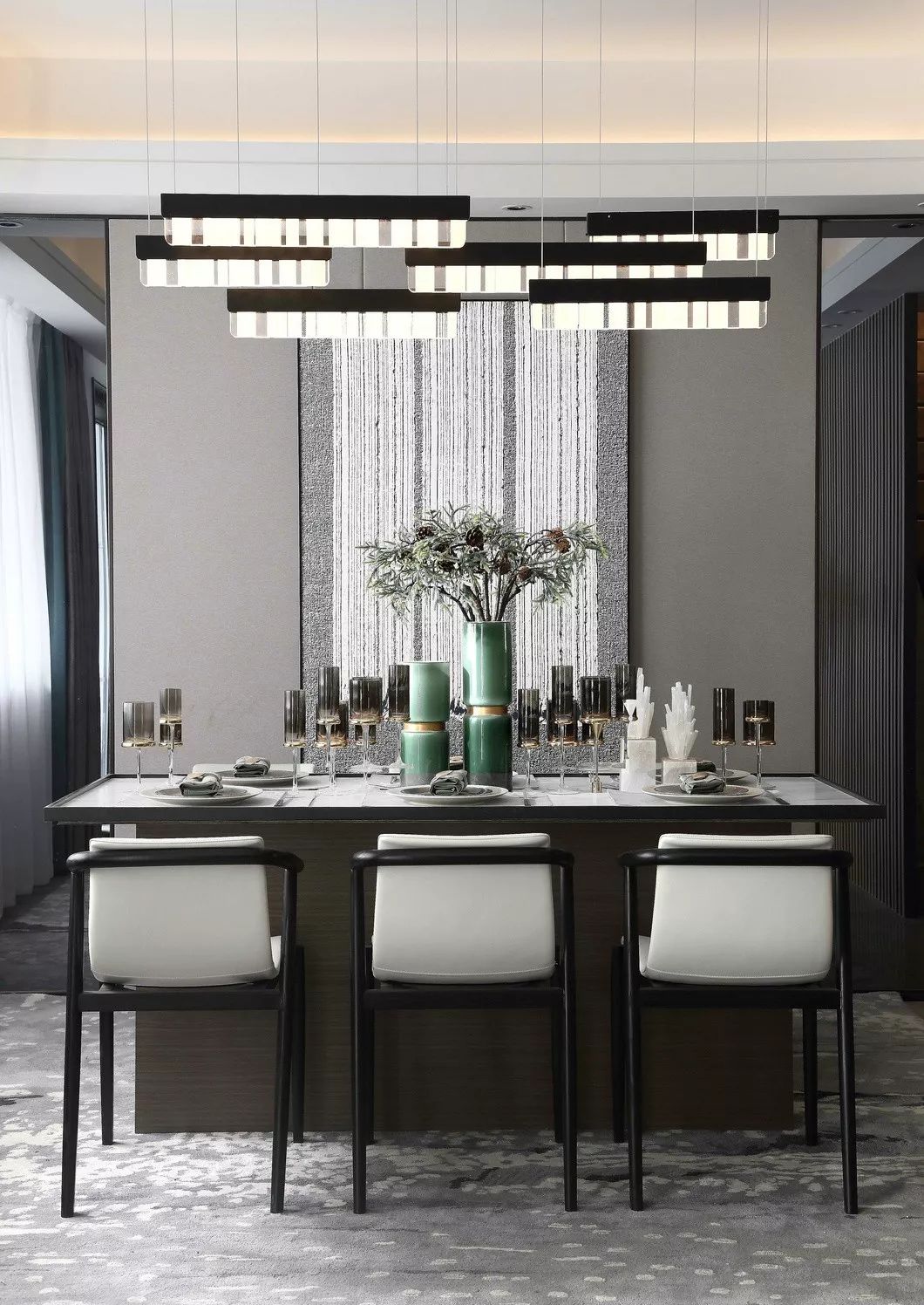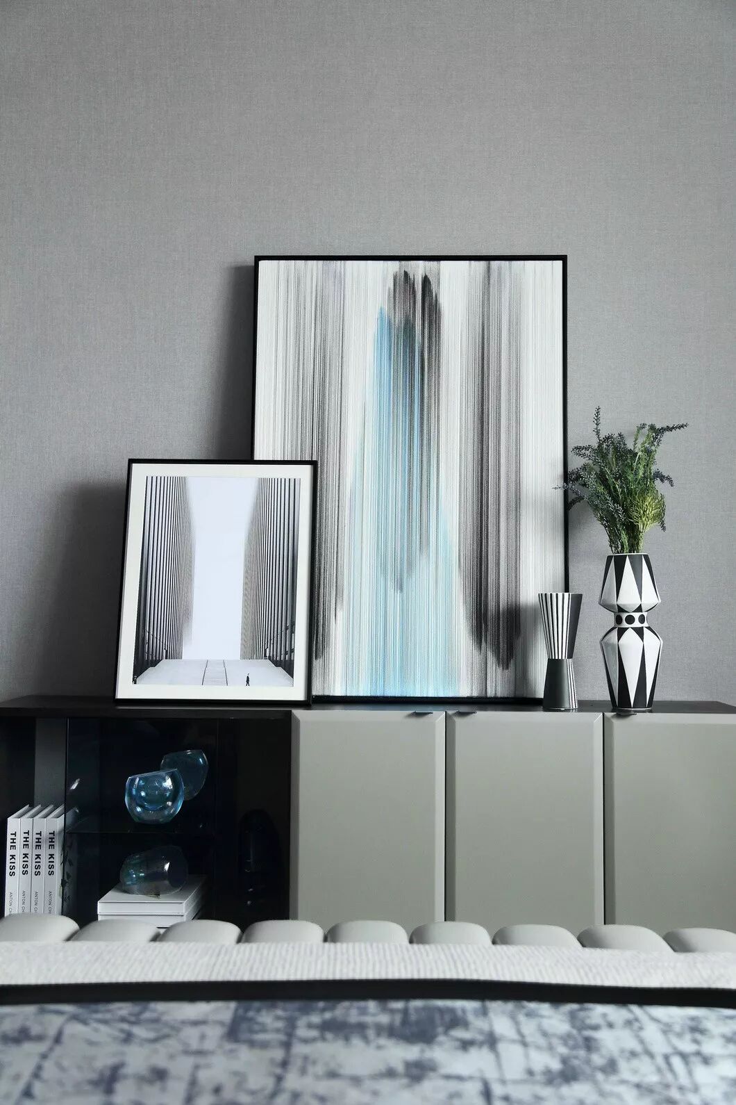 谈及艺术,有人热爱毕加索的几何图形,也有人喜欢莫奈的明艳色彩和光芒,本案中餐厅的艺术画作则以极简主义的单色装饰画作,以极简线条和明暗对比,营造出另一番想象空间。