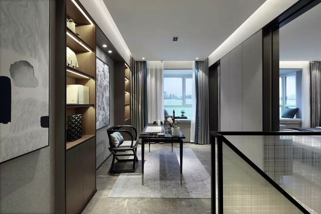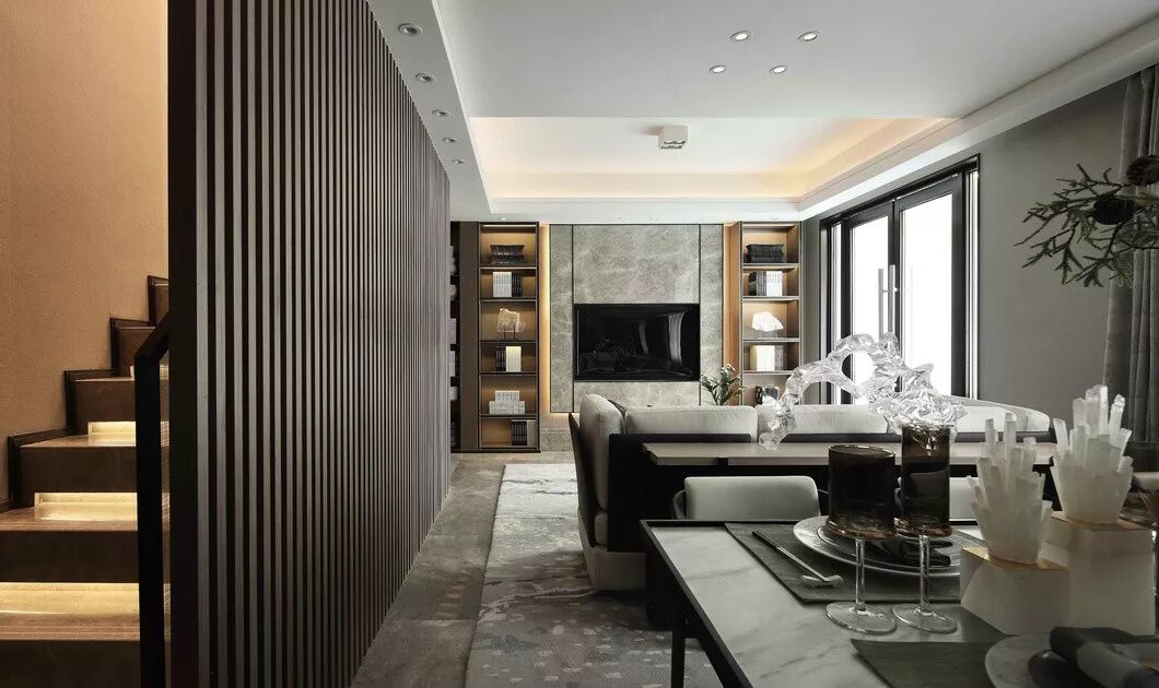 设计保留中式意境,提取元素不断简化,采用中式留白手法,结合现代极简艺术、空间线条结构,由点成线,由线成面,演绎全新的东方家庭生活。