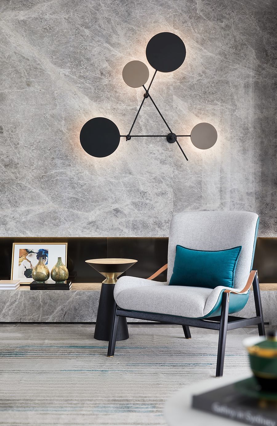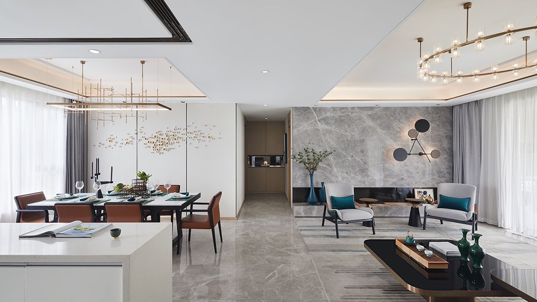 同时择取含蓄内敛的古铜、高贵典雅的石材、光泽细腻的皮革,配以无处不有的温润气息,以期呈现集品质、艺术、舒适为一体的精妙生活方式。