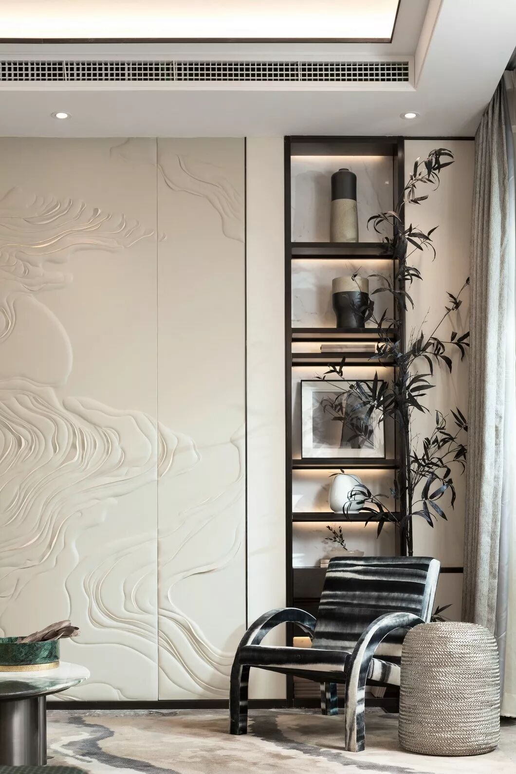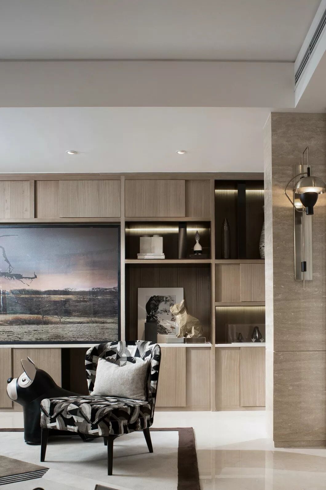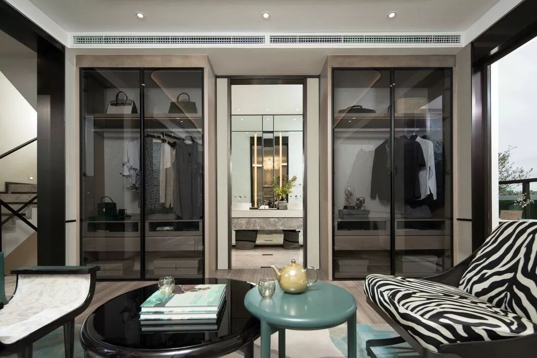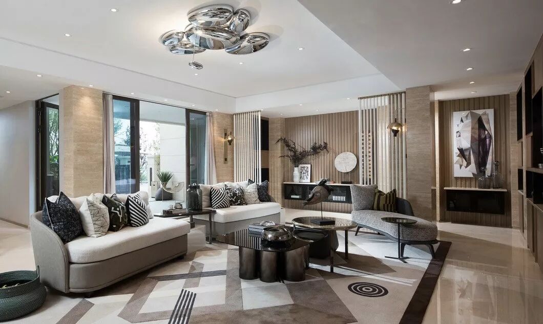 纳沃设计在空间中引入现代简约的美学精神,以米咖色为主调,不同饱和度的黑灰色系加以花纹、条纹等元素加以点缀,定义空间的现代艺术风尚。