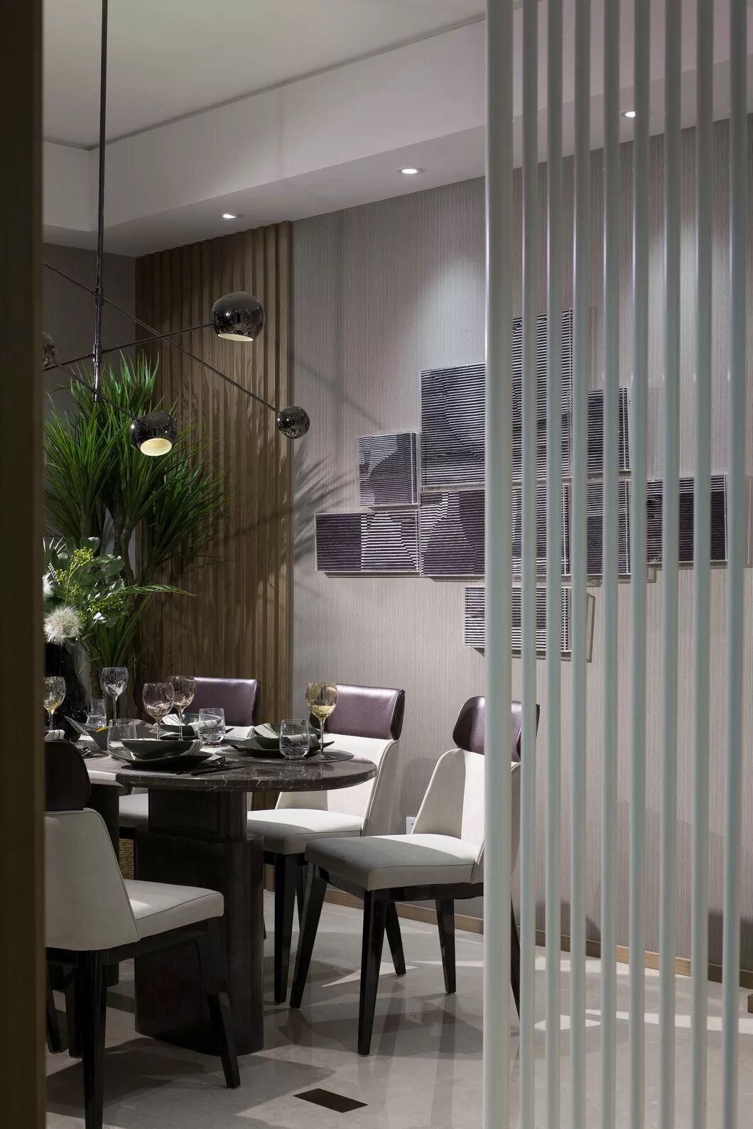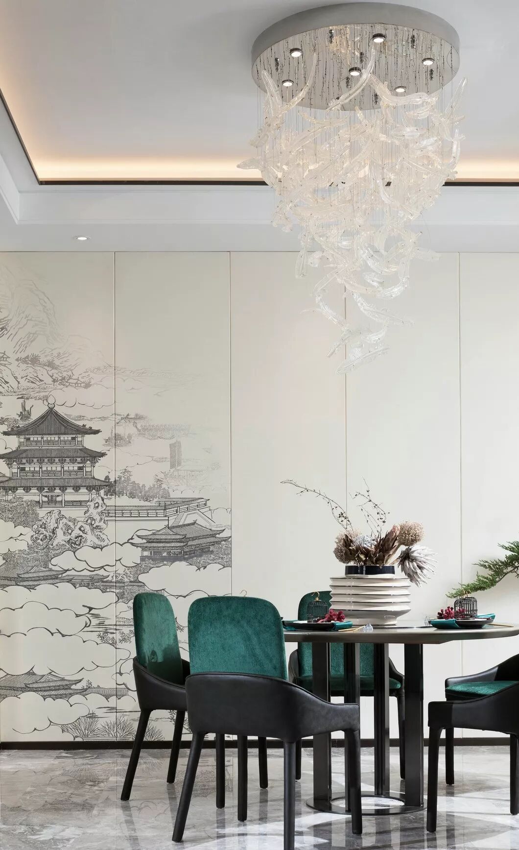 郑板桥曾说:“室雅无须大,花香不在多”,恰巧能形容本案的餐厅—意境的营造结合园林,将自然、山川放入自家庭院,何其幸运!