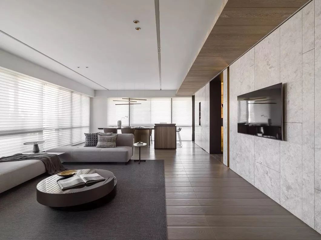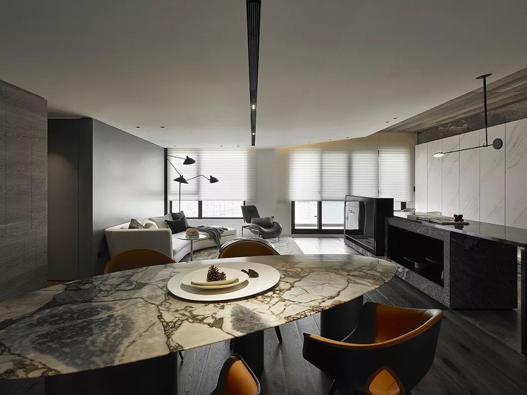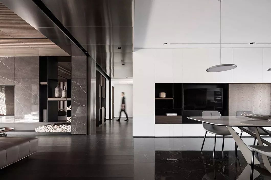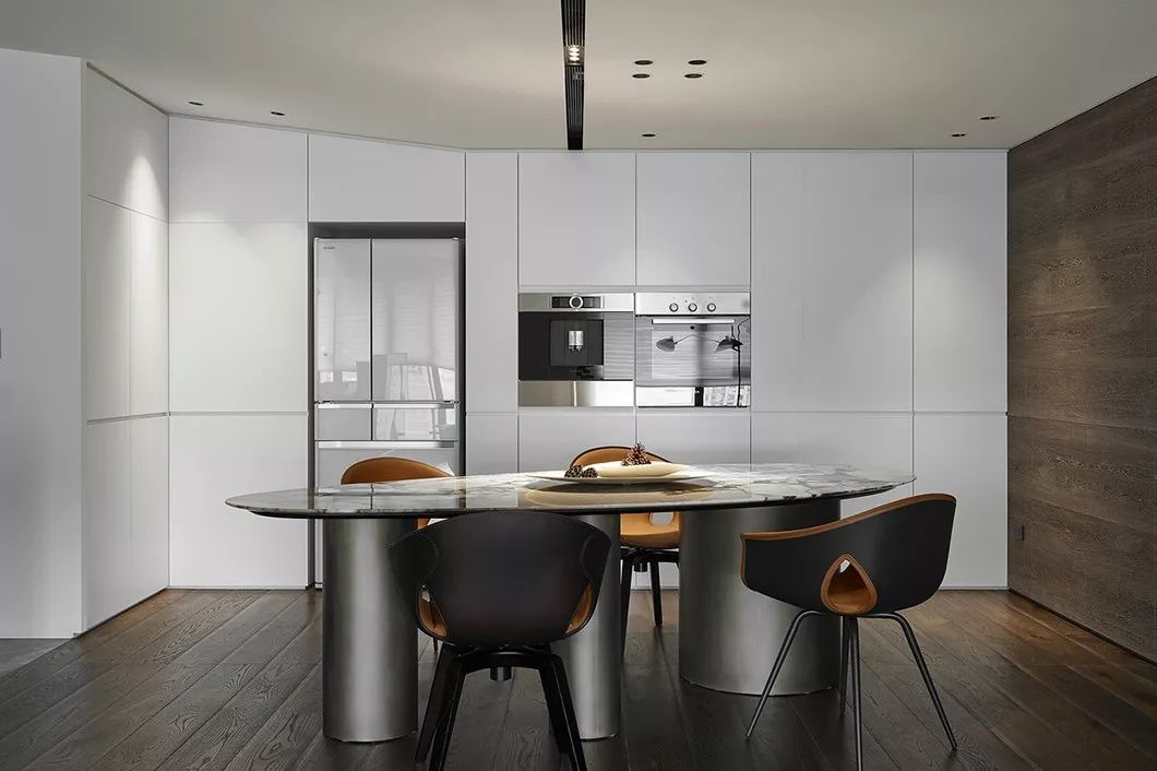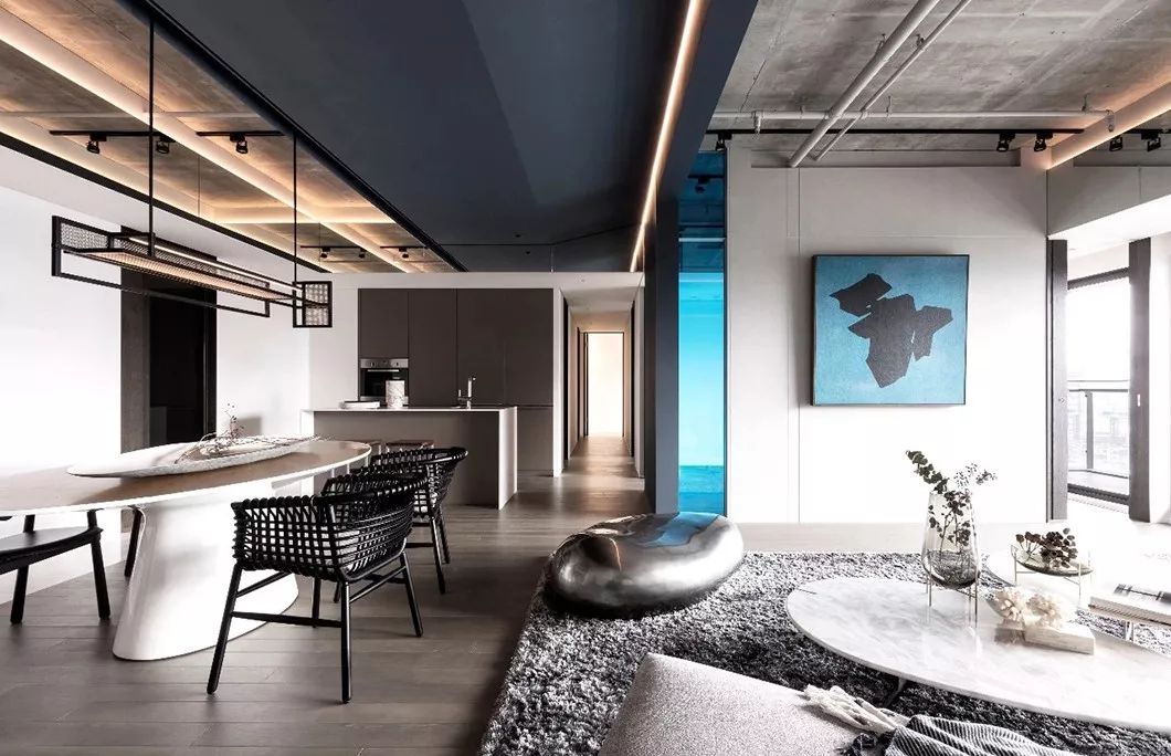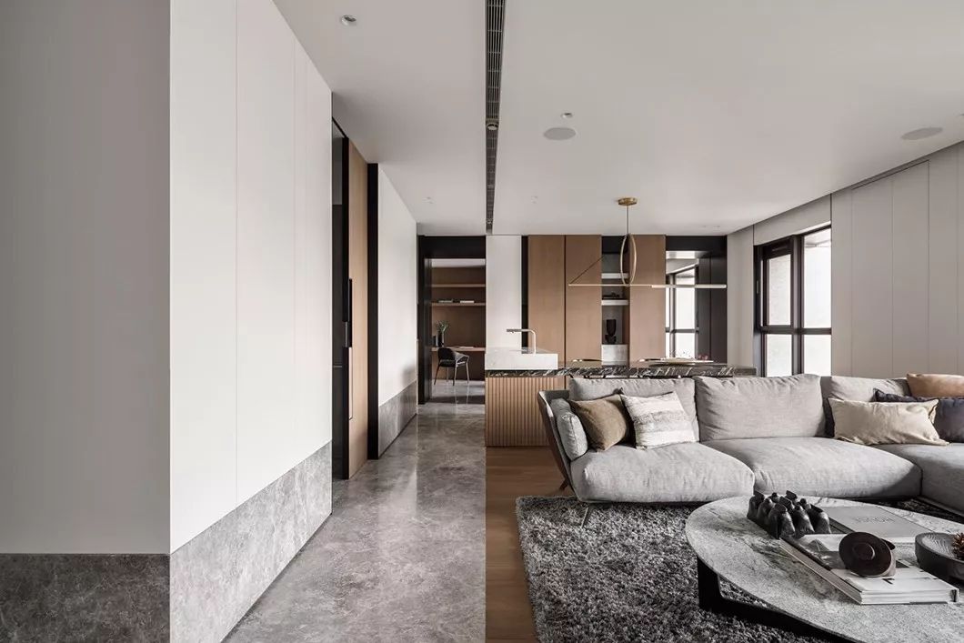 全室采用简约的线条、纯粹的材料、利落的量体造型等元素,在现代化的住宅中,除了来自于经济层面的批量化需求,更强调纯粹美学。