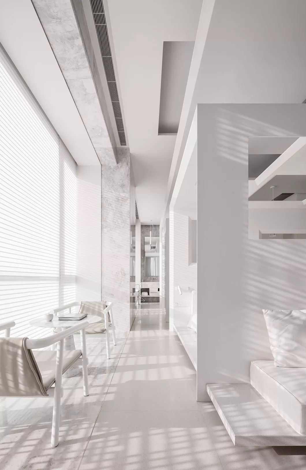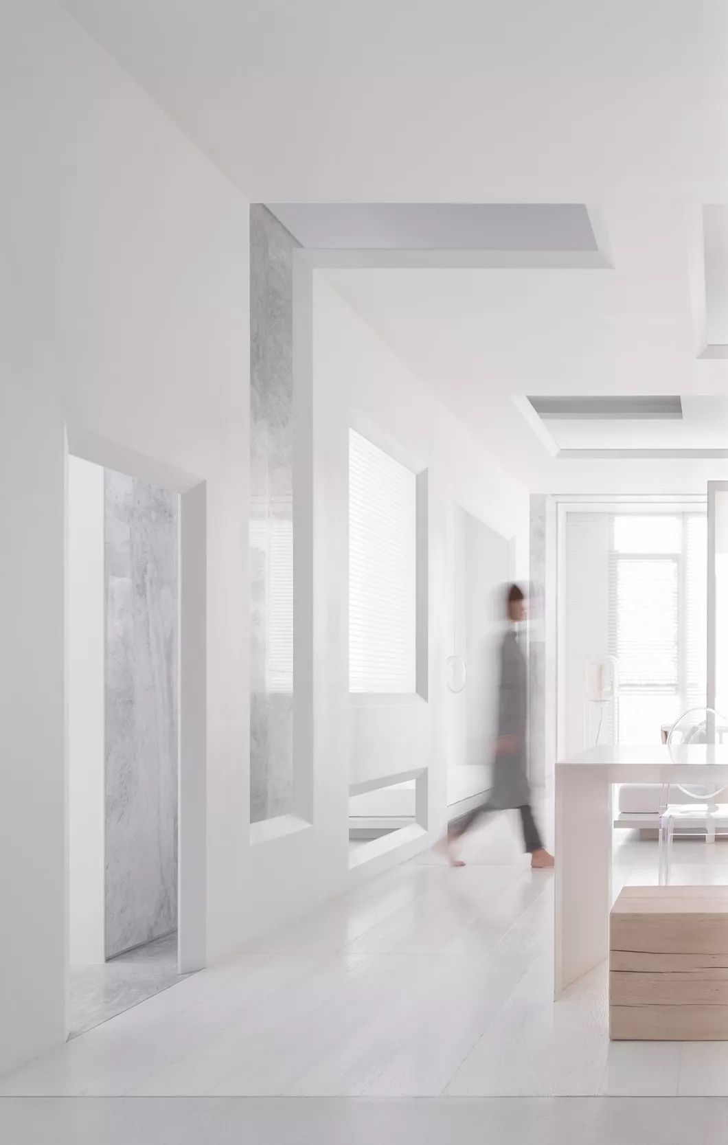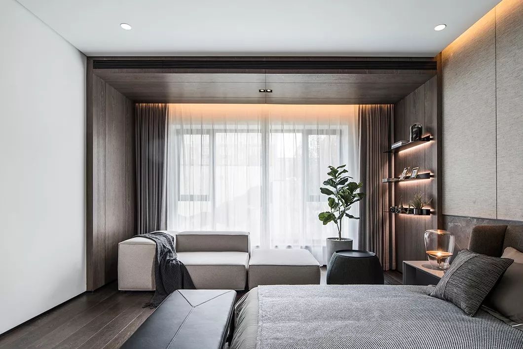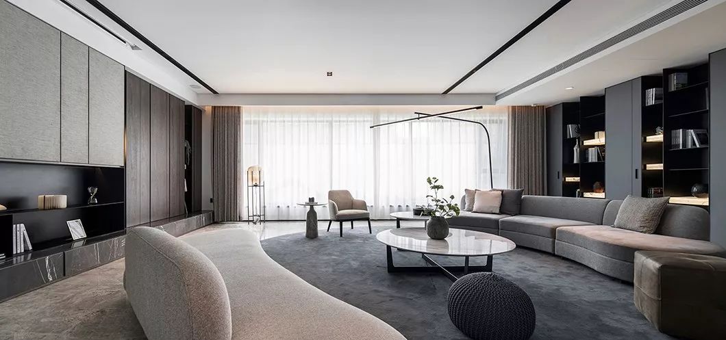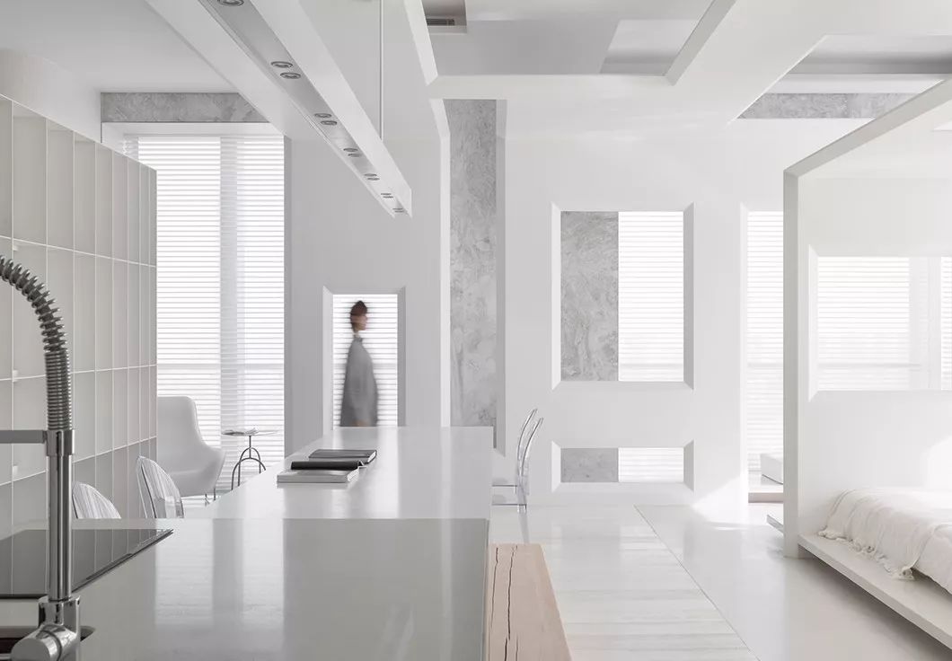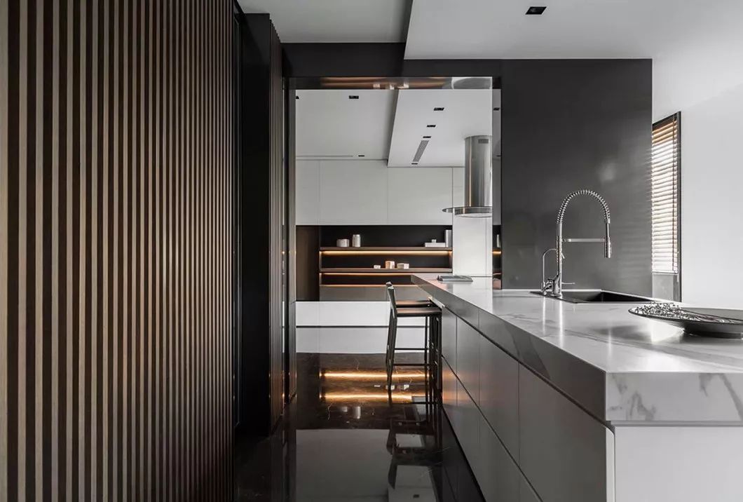 全室采用简约的线条、纯粹的材料、利落的量体造型等元素,在现代化的住宅中,除了来自于经济层面的批量化需求,更强调纯粹美学。