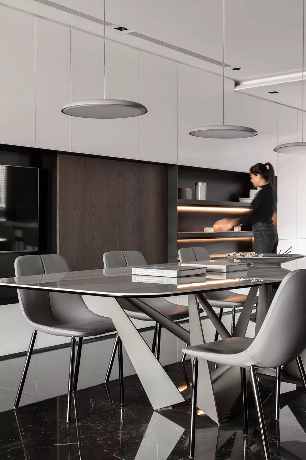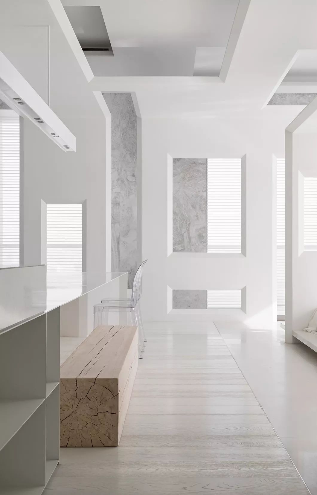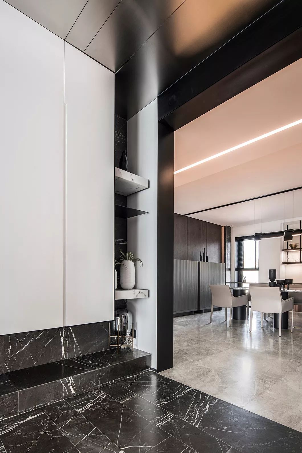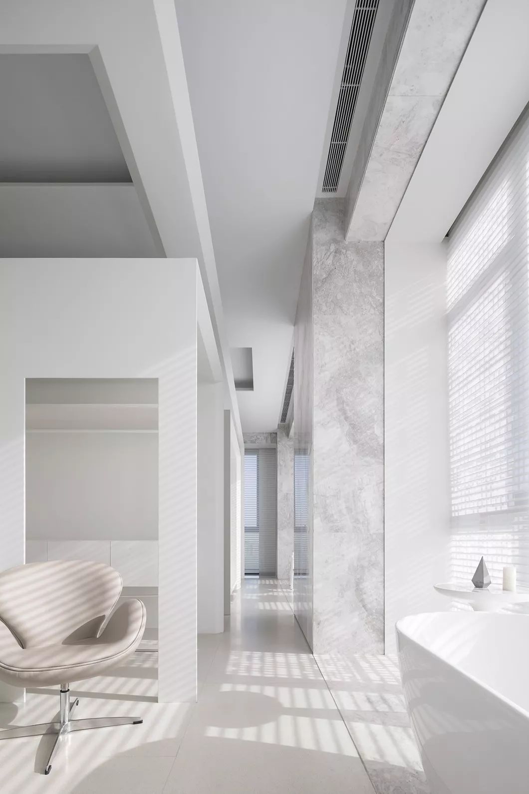 全室采用简约的线条、纯粹的材料、利落的量体造型等元素,在现代化的住宅中,除了来自于经济层面的批量化需求,更强调纯粹美学。
