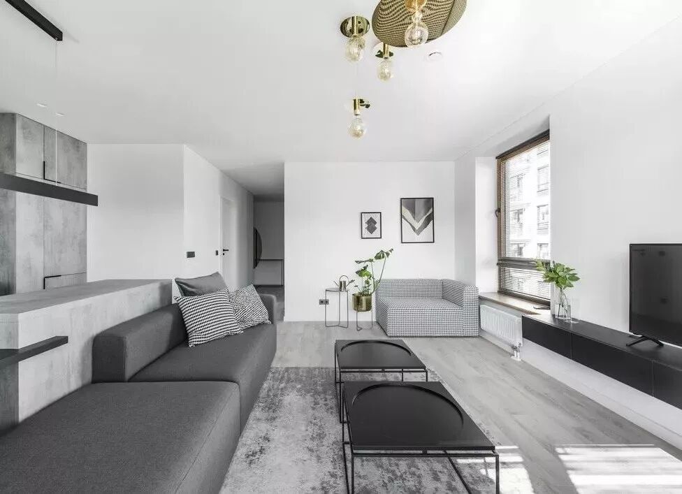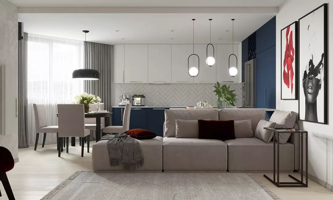 大开间可以选择的沙发种类很多,同样可以跳出固定模式,选择独特的双向式,两边都能坐,最适合一家人在客厅里各自玩耍了。