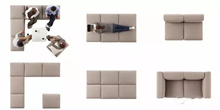 例如无印良品、宜家的单元沙发,对于家里人口较多,或者喜欢改变家居动线的人来说再适合不过了,只需要改变沙发的组合模式,就可以低成本地完成客厅的改造。