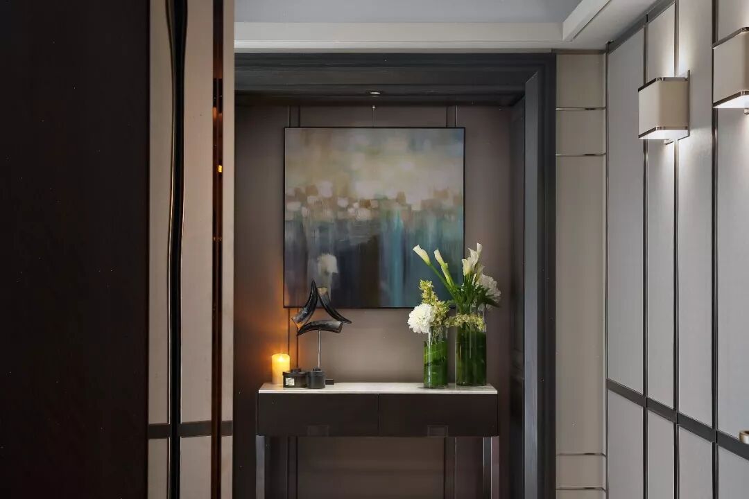 设计师在玄关口点了几盏灯,并以平衡却带韵律感的线条做为视觉指引,让回家的人感到备受尊宠。