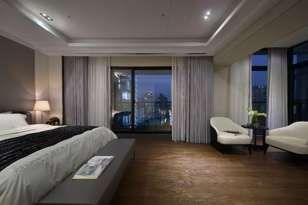 长景深的空间,积极创造水平轴线的延续来衔接窗边天地大景,以金属细致横向活动拉门重新介定区划空间关系深化视野旷貌,将屋外绿意大大方方借景堆栈于室内每一角落,达到空间中处处揽景无遗。