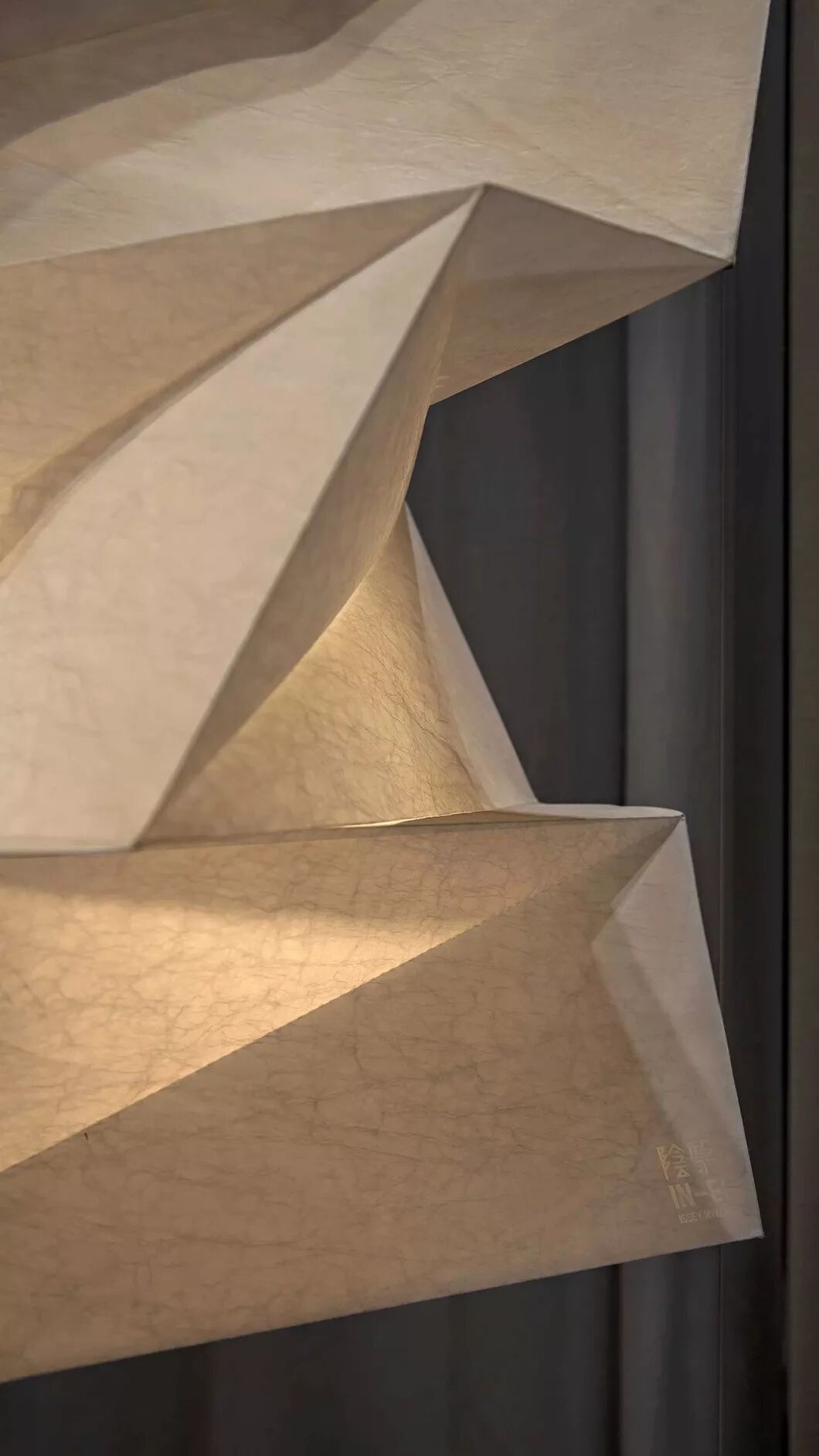 客厅左侧三宅一生的折叠灯具,艺术加诸特殊纸张的成果,在展开之前触感细腻柔和,伸张开来却立体动感,线条硬朗。依傍移门引入的日光月色,擅长与光影对话。它将光明与阴影恰如其分地平衡,是独特而美妙的灯饰工艺。