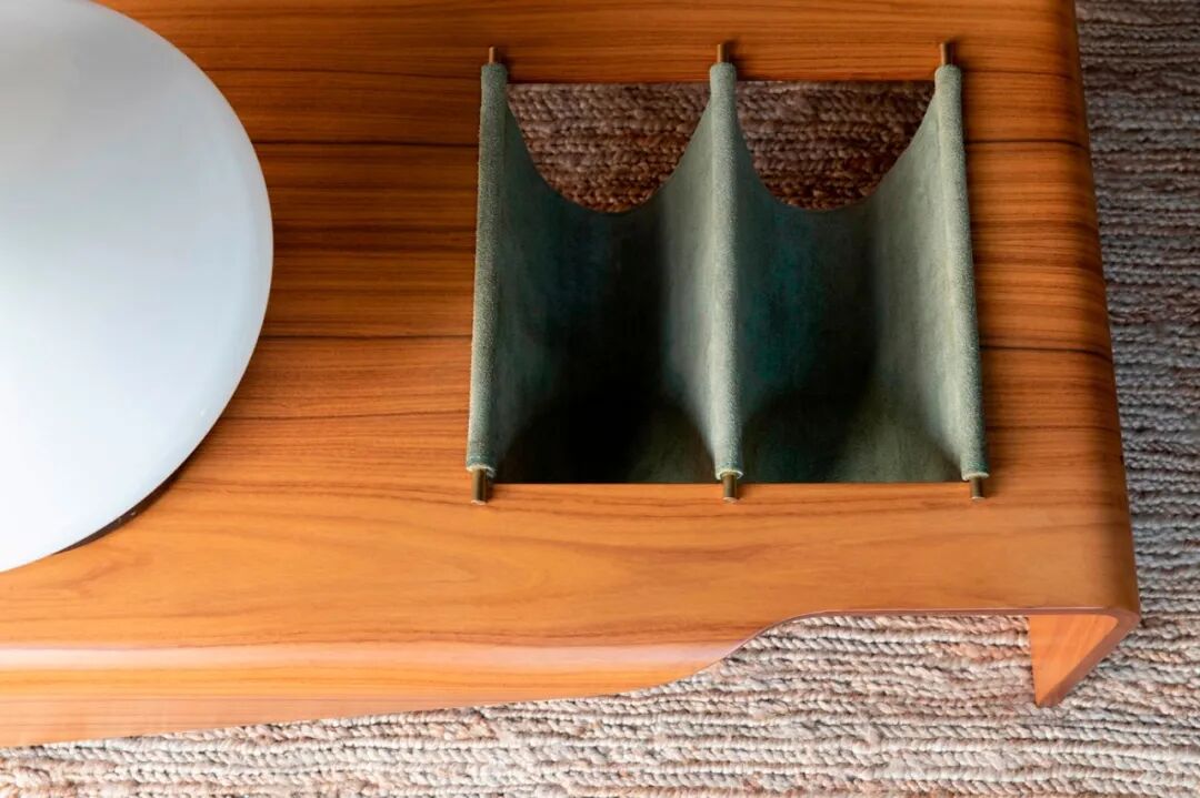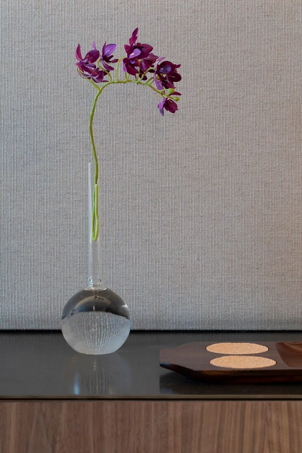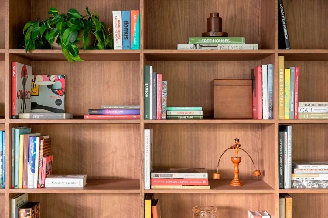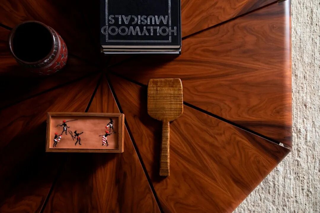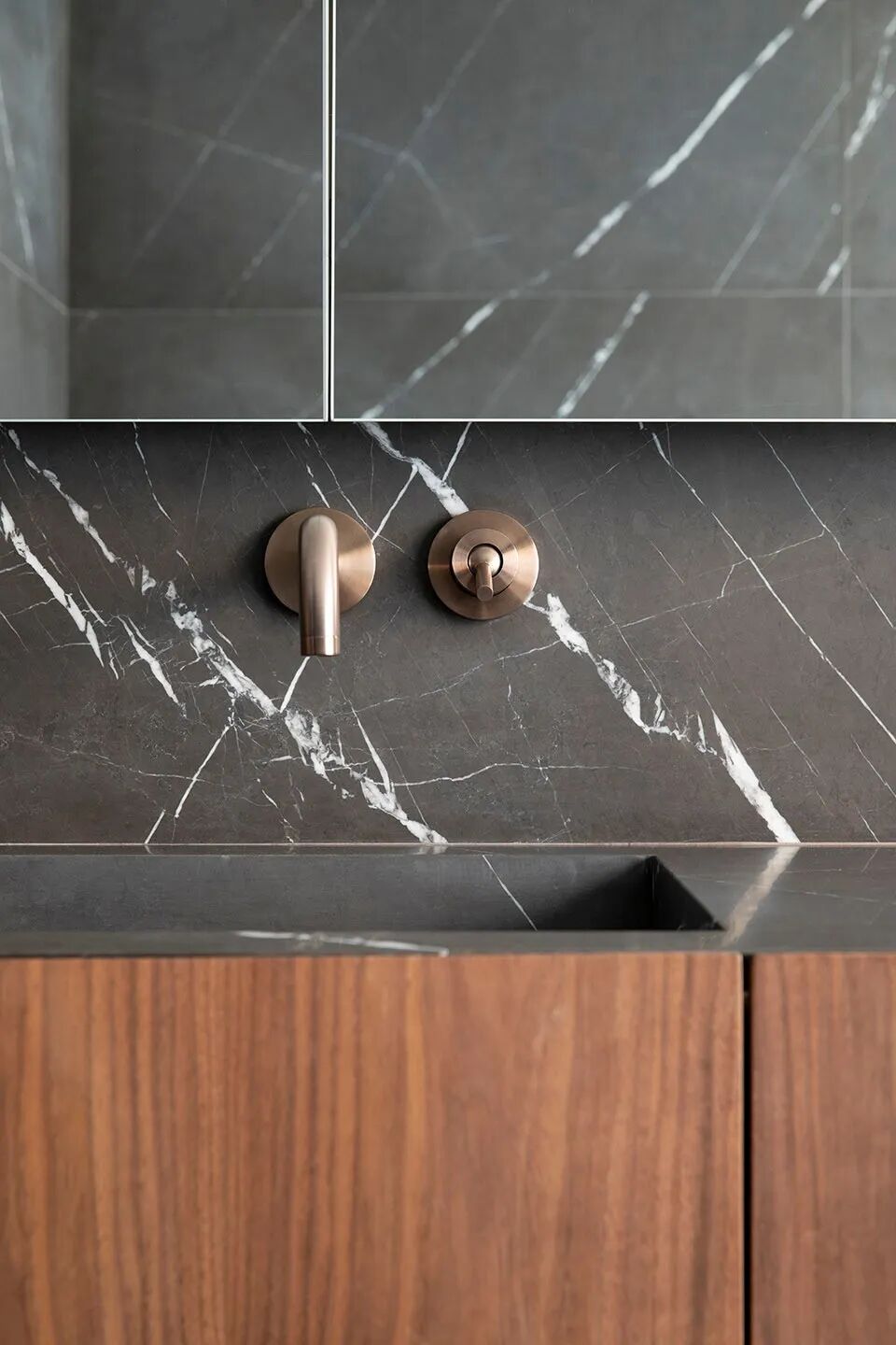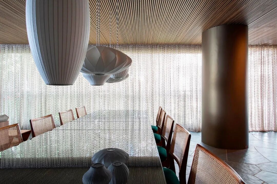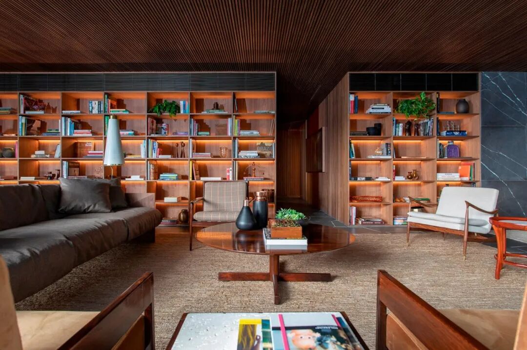 设计团队使用天然材料,如碎石板地板、木条天花板和胡桃木墙面等,在公寓中营造出一种舒适的氛围。