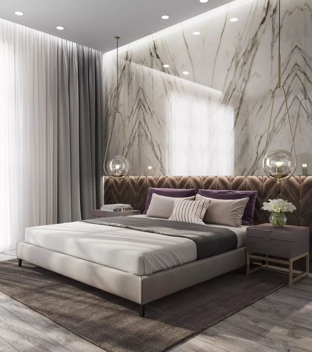 卧室是我们睡觉休息的地方,氛围上更具悠闲宁静,大多以暖色调为主,利于营造温馨欢乐的氛围,当然也可以选用一些浅色的中性色。