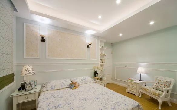 第三:注意简洁性。田园风格卧室注重自然的清新以及简约的设计,所以一些繁琐的装饰要抛开,墙面越简洁越好,通常用一种颜色的硅藻泥,再适当做点花纹和点缀即可。