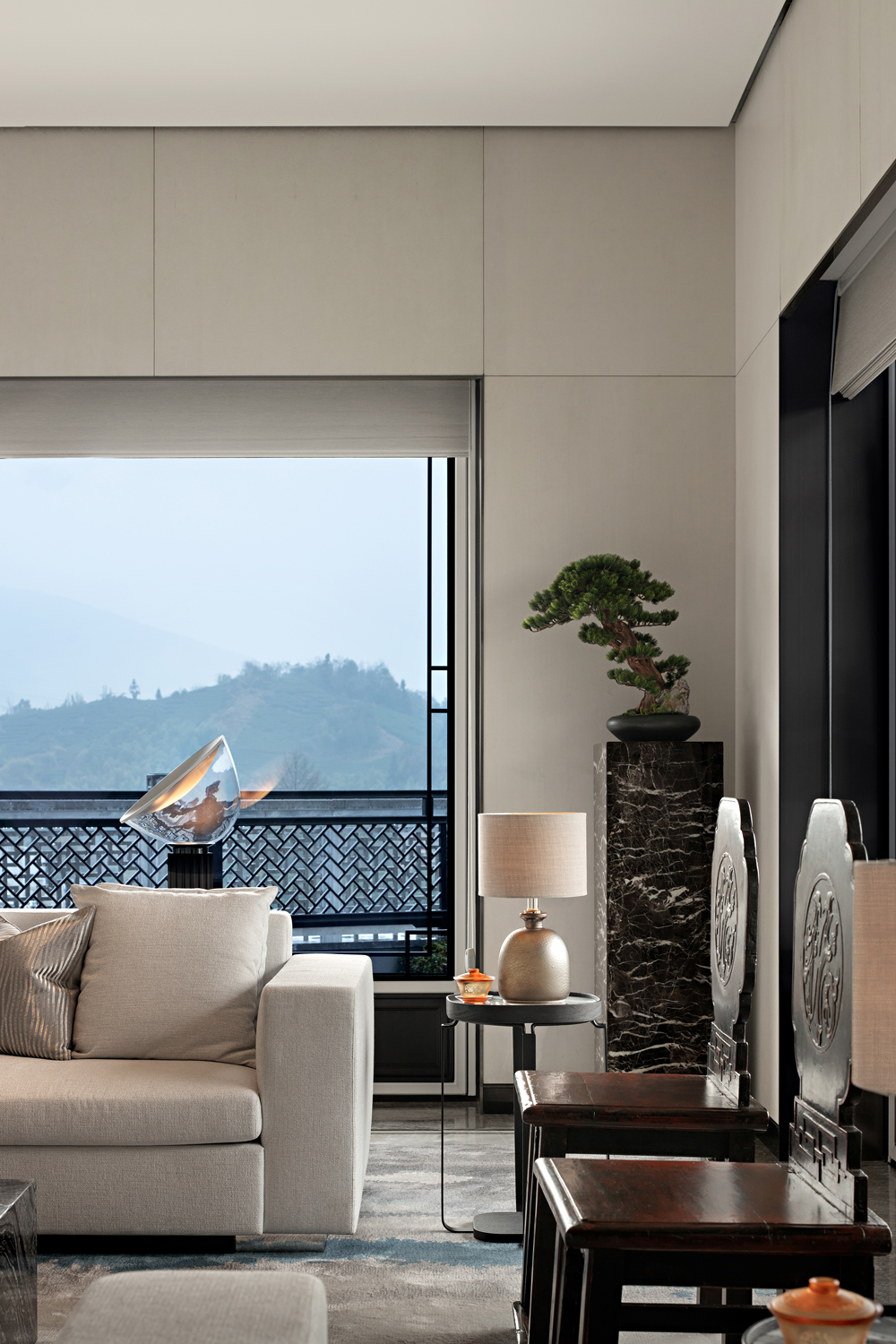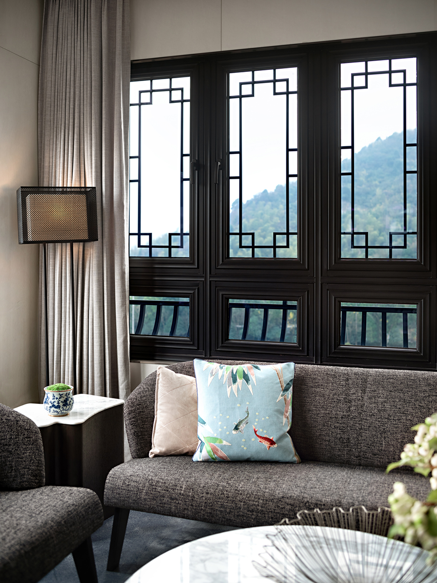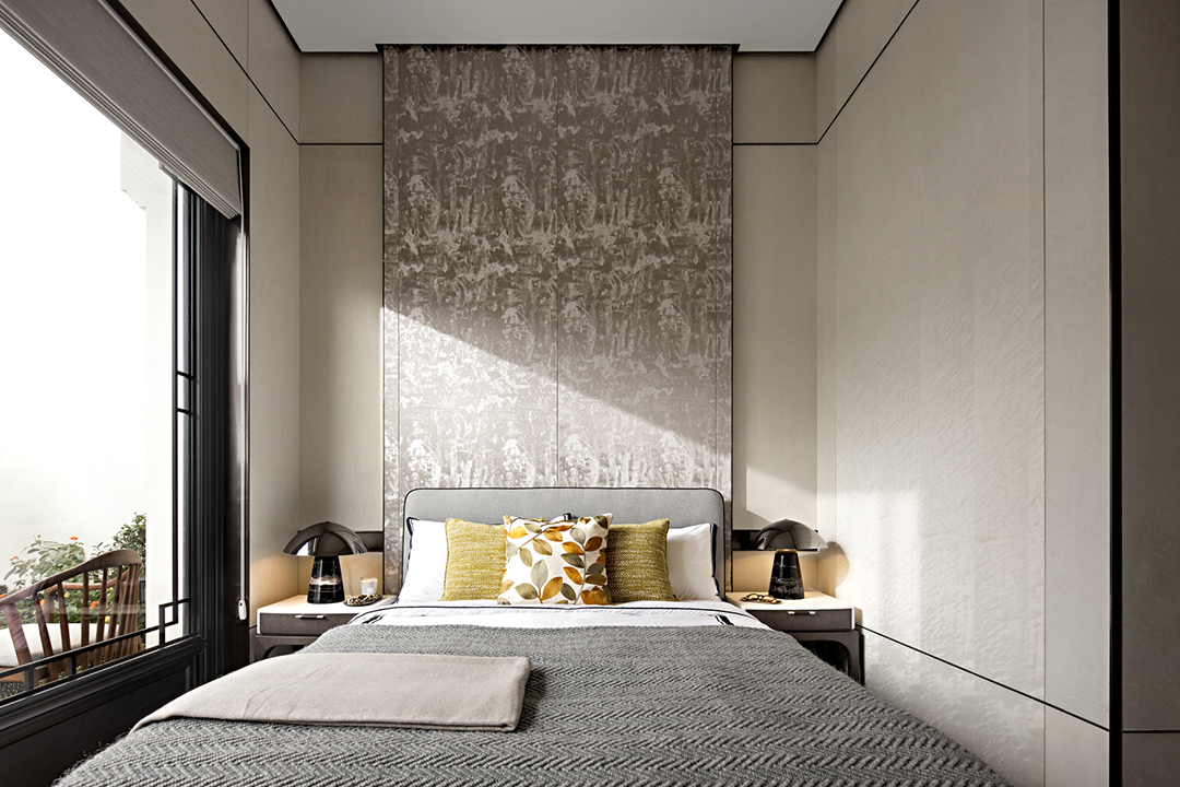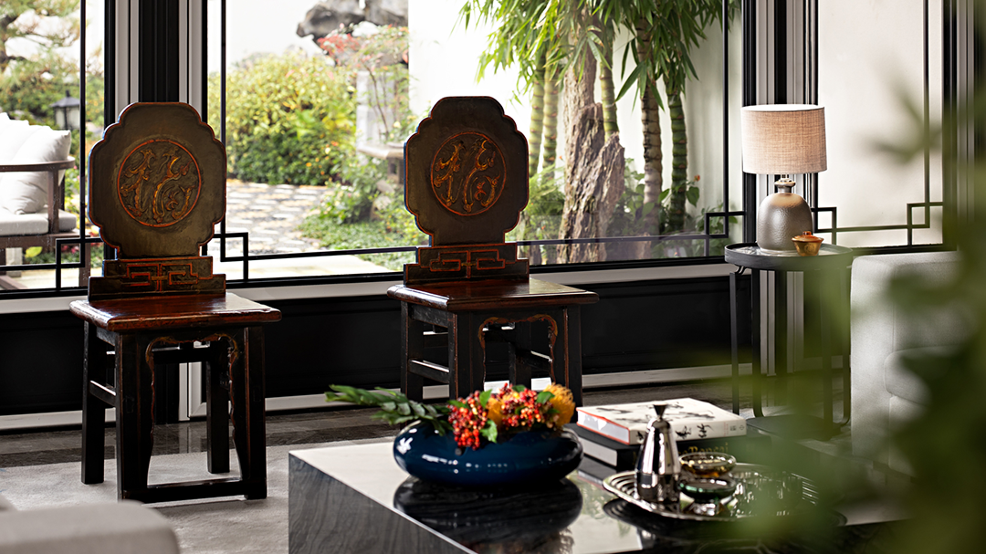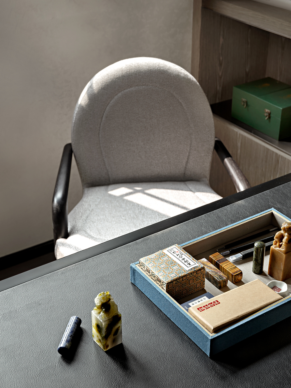 而出人意外地,室内空间的基调打破了“中国风”惯用的古朴沉稳的气质,令“宁静”“持重”“柔和线条”和“呼应环境”成为了设计的关键词。这一切,呼应了活跃于20世纪20年代的现代主义建筑师和装饰家。