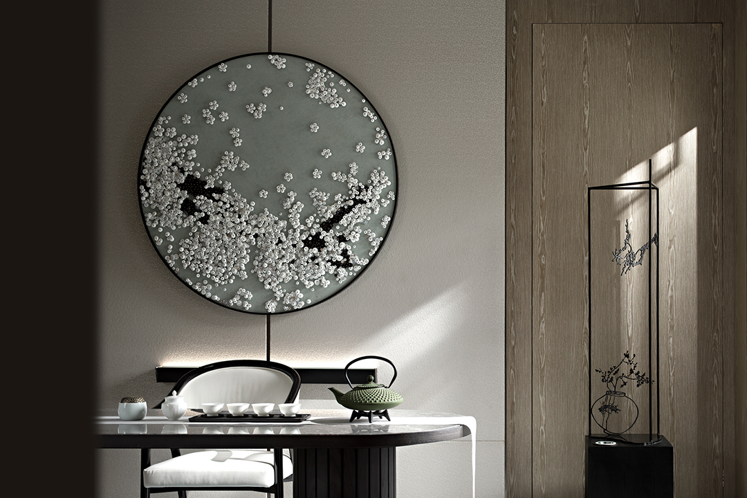当我们注意到材料和工艺的精妙细节,家具、配件上的漆膜,使用时的微妙触感,正是这些超乎寻常的无形奢华,传达了一种文化,一种生活的艺术,传递出摆脱尘世的束缚,获得散心避世、隐居烟雨江南的的栖居心境。