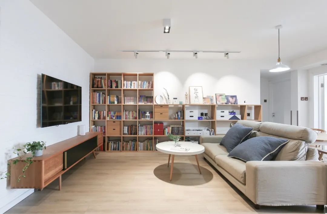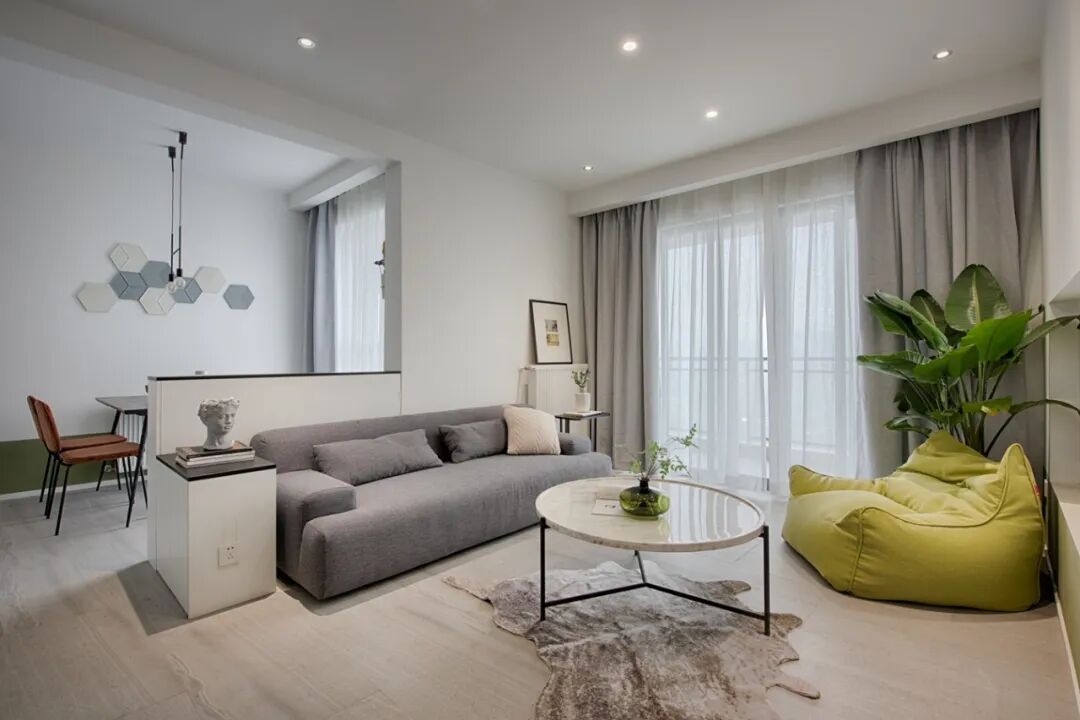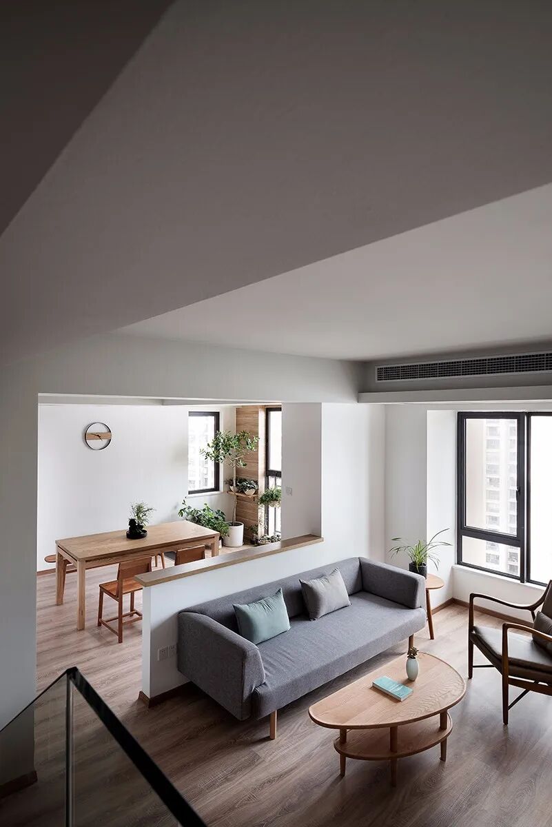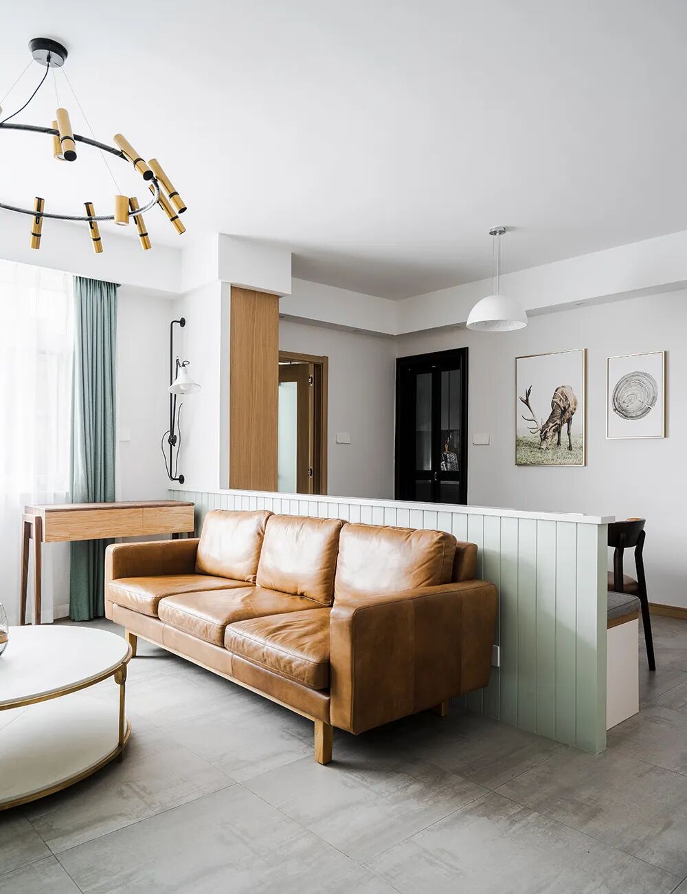 在沙发后面砌个矮墙,既可以划分空间,也让沙发背后更有安全感,又能保持空间的通透大方。