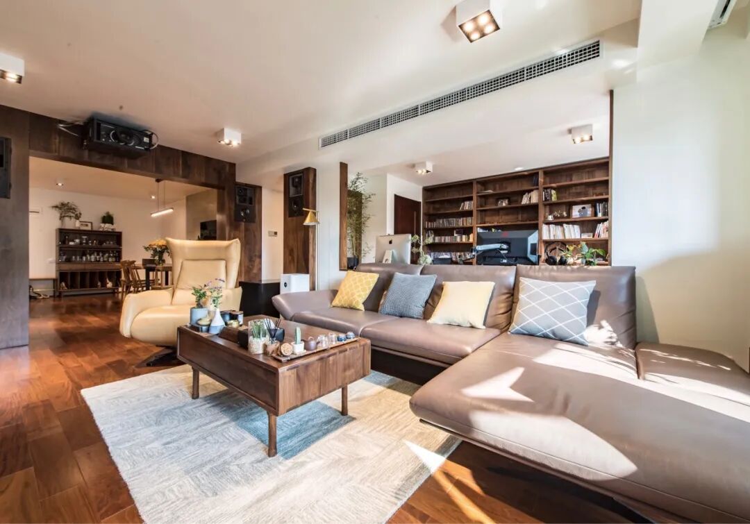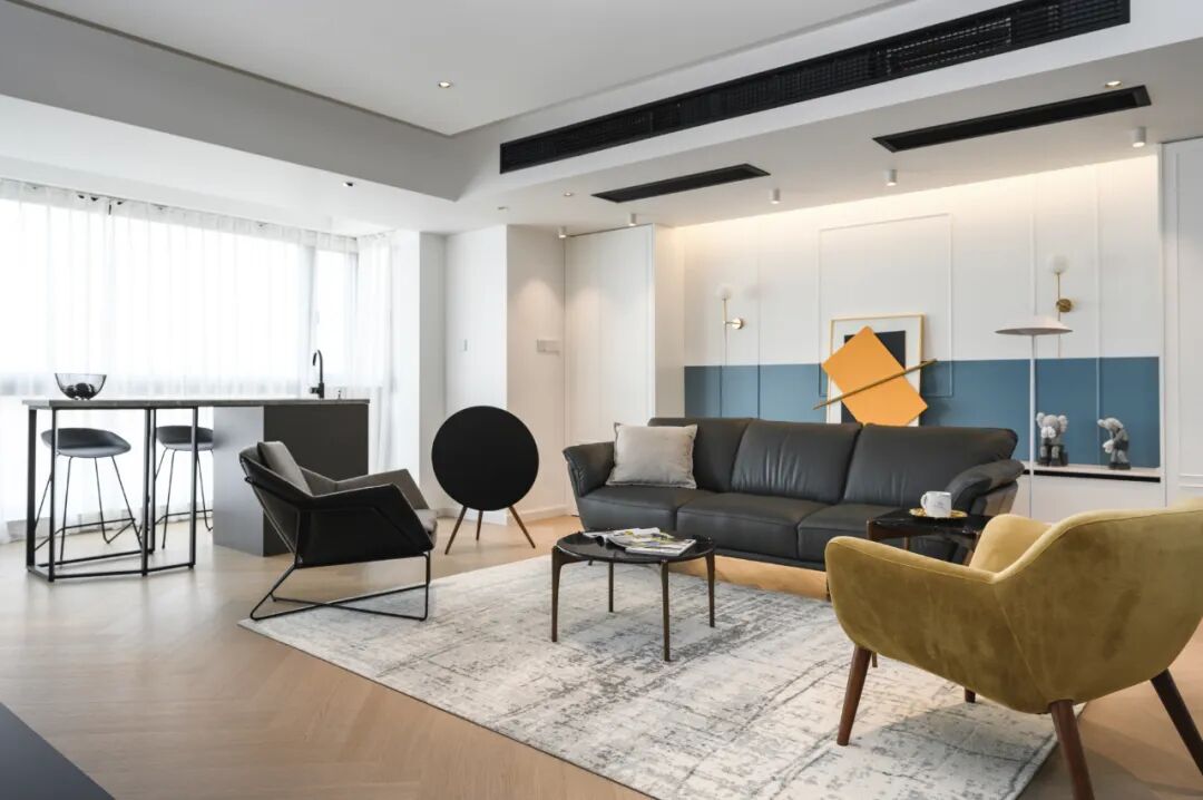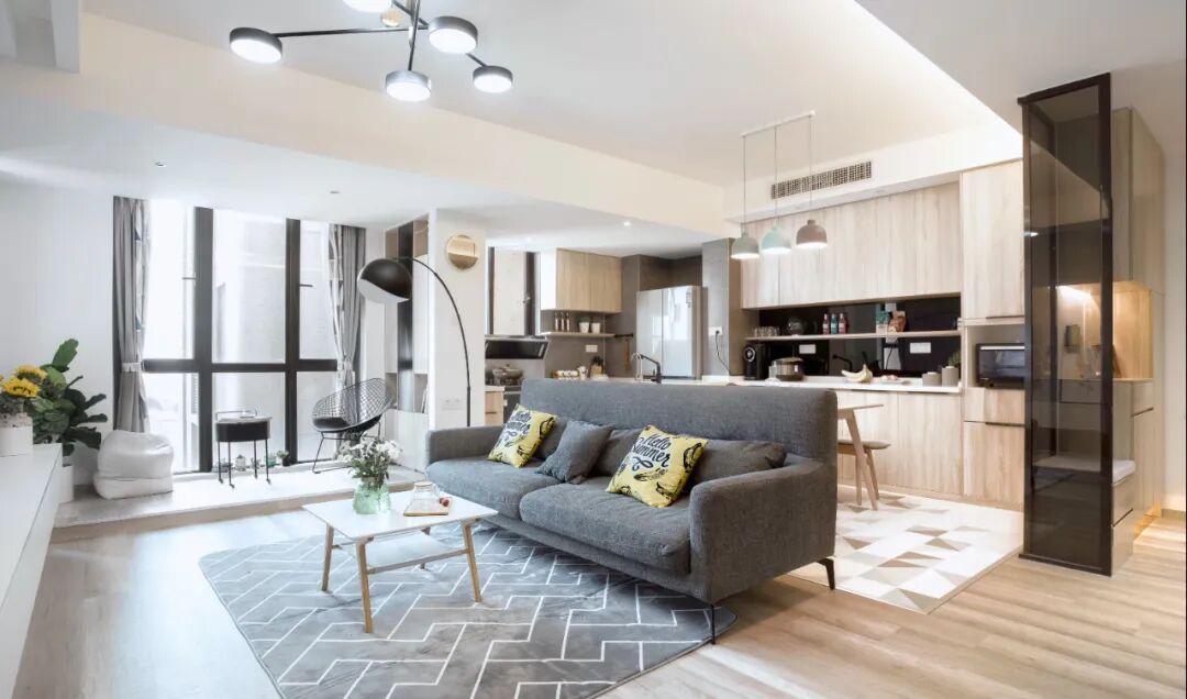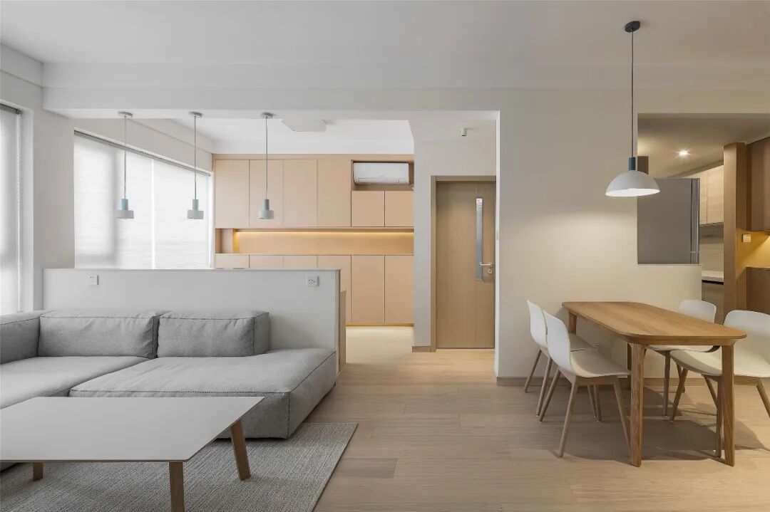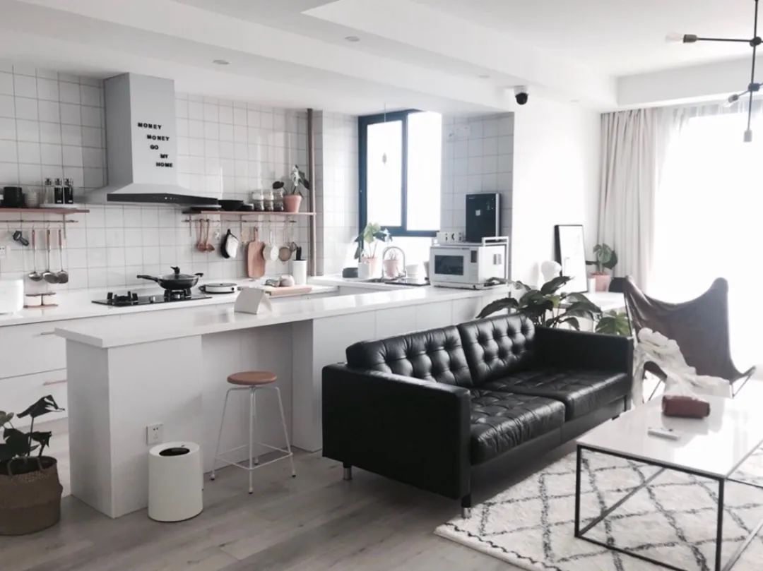 在沙发后面砌个矮墙,既可以划分空间,也让沙发背后更有安全感,又能保持空间的通透大方。
