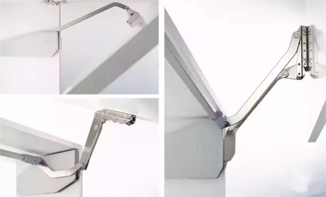 不仅如此,上翻柜门需要的支撑配件也不少,比如,随意停弹簧、折叠双门液压支撑、有气动支撑…