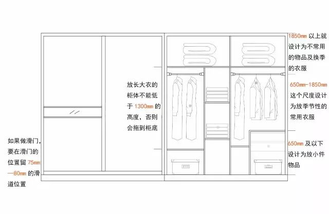 其次,在进行衣柜布局时,你应该了解,衣柜的大体布局的尺寸,才能做好专属于你的衣柜布局的规划。