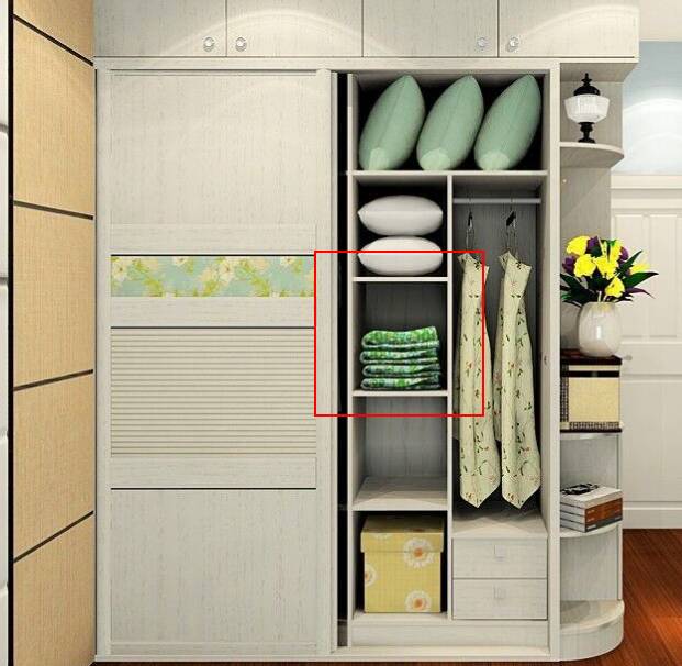 2、在衣柜的顶部安排三隔层板,用于叠放除当季以外三个季节的衣物。