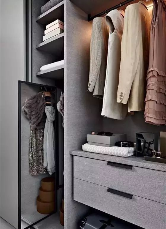内衣、领带和袜子可用专用的小格子,既有利于衣物保养,取物也更直观方便;毛衣可放在较深的抽屉里;裤子则用专用的挂架存放。