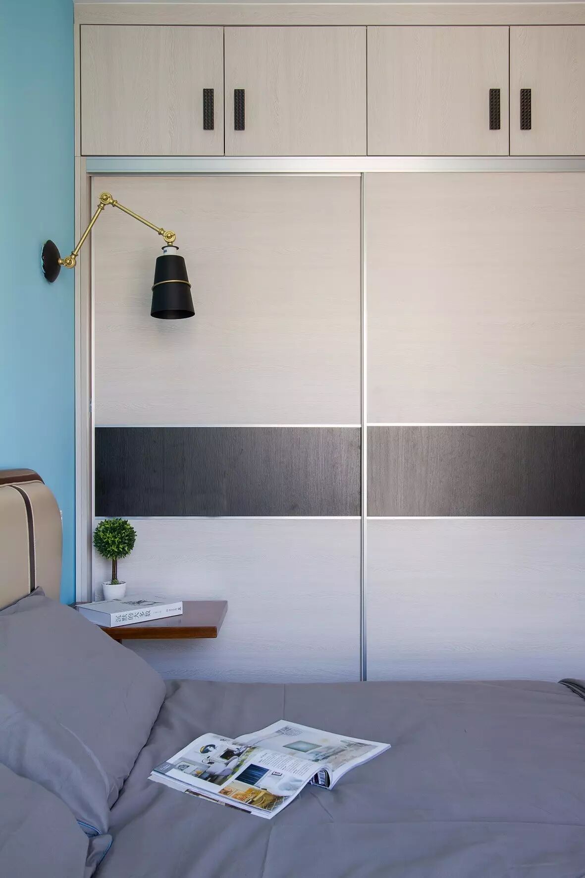 优点:不占用空间,即使床头柜贴着衣柜摆放,也不影响衣柜的使用。