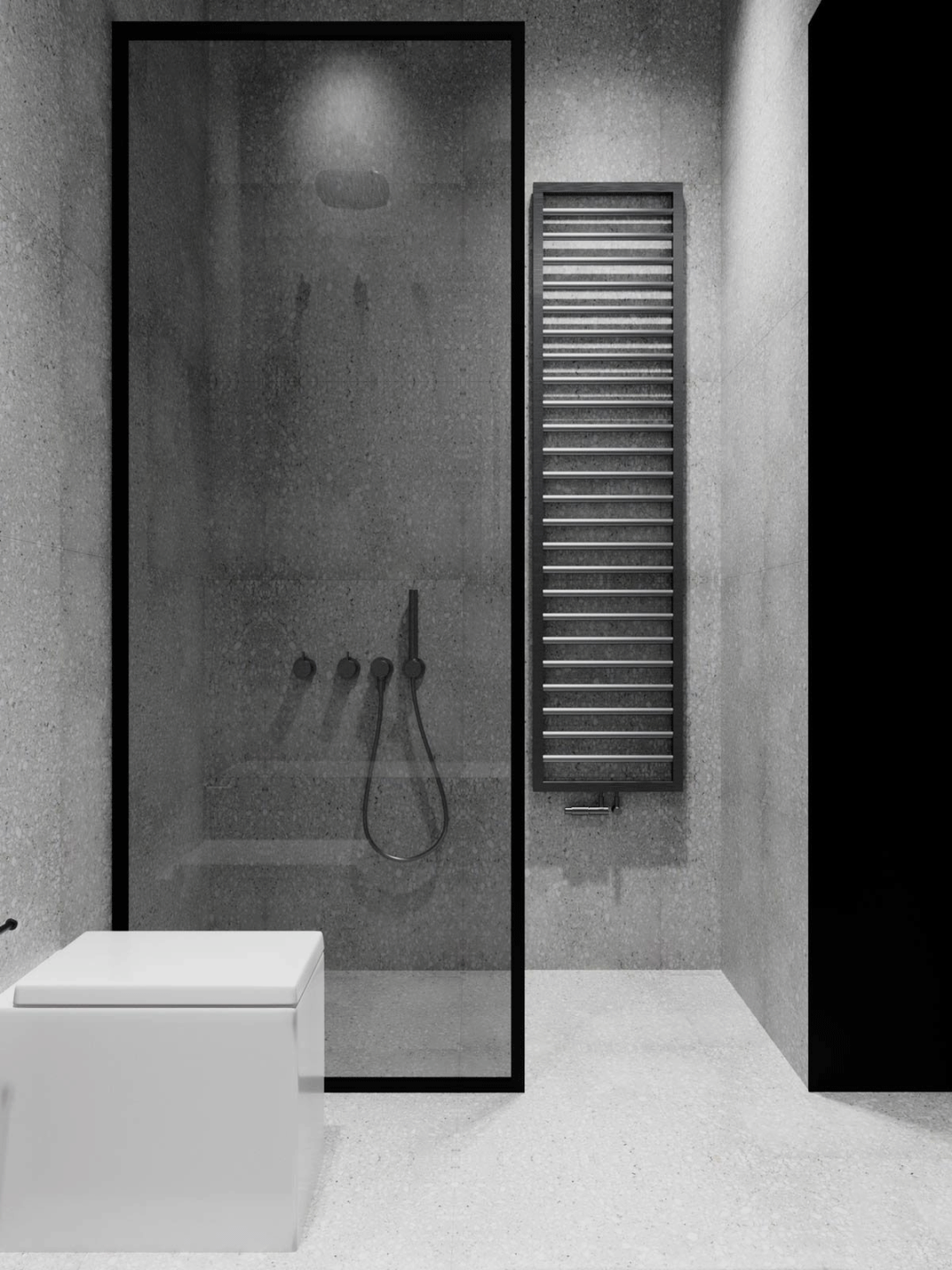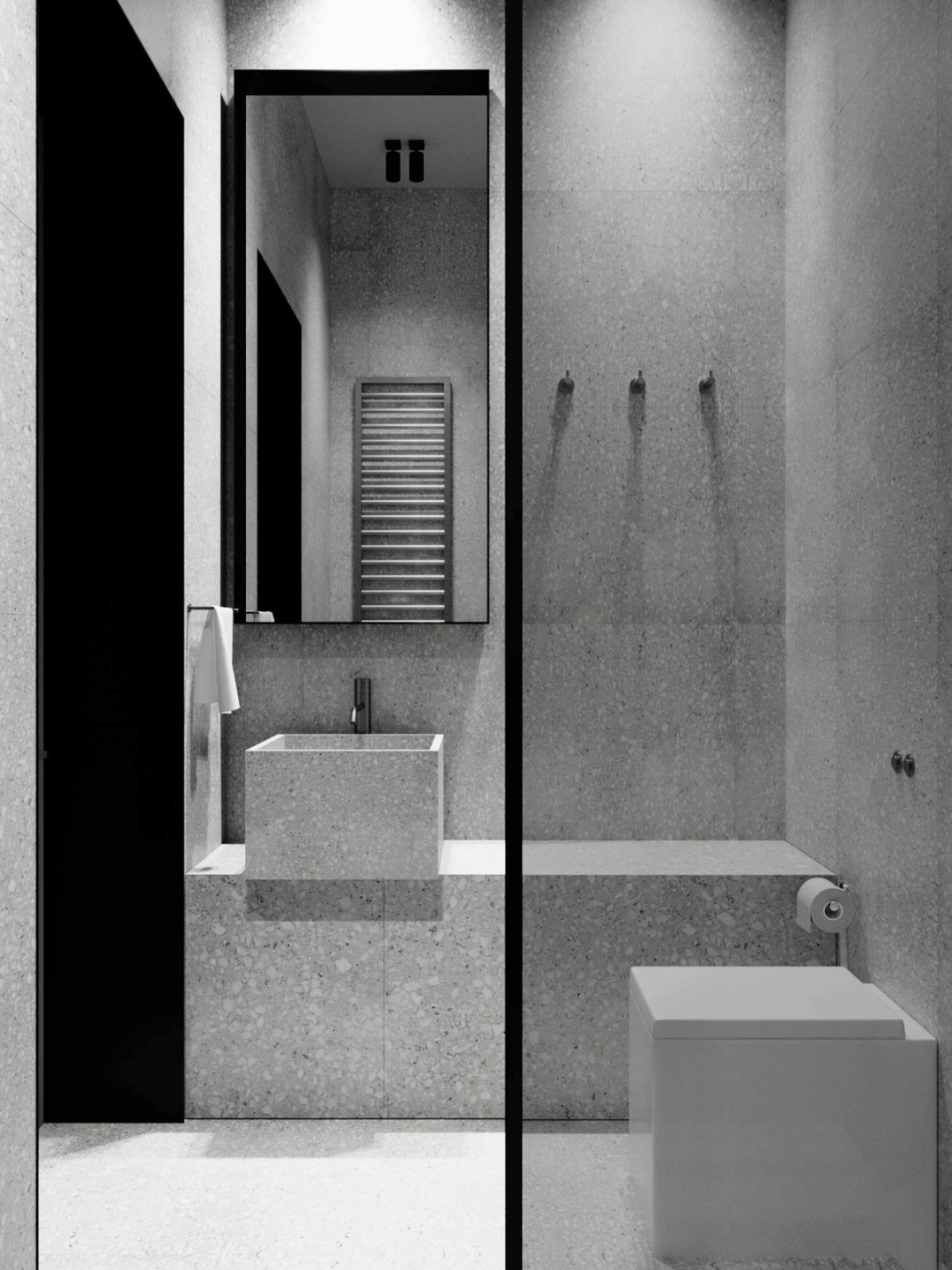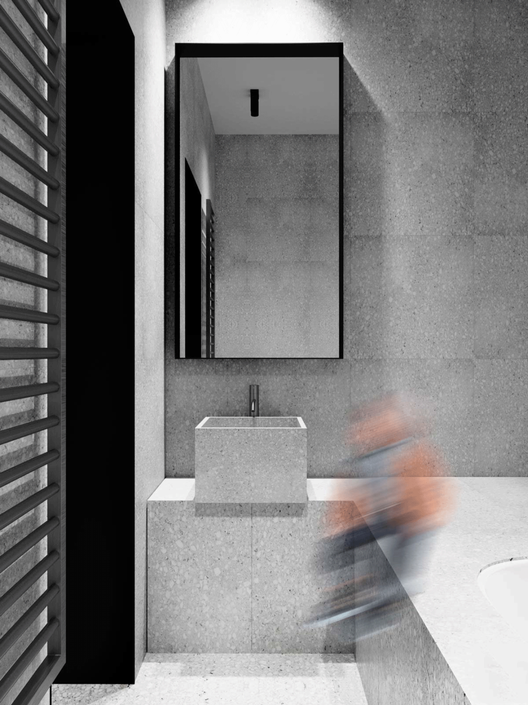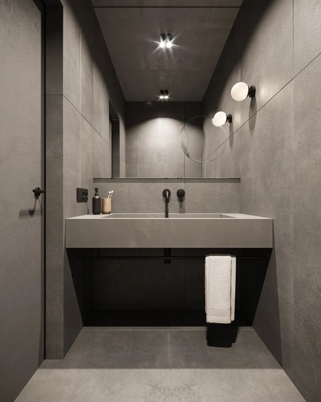 另一个卫生间主色调则是中性灰色,呼应整个空间设计的主色调。