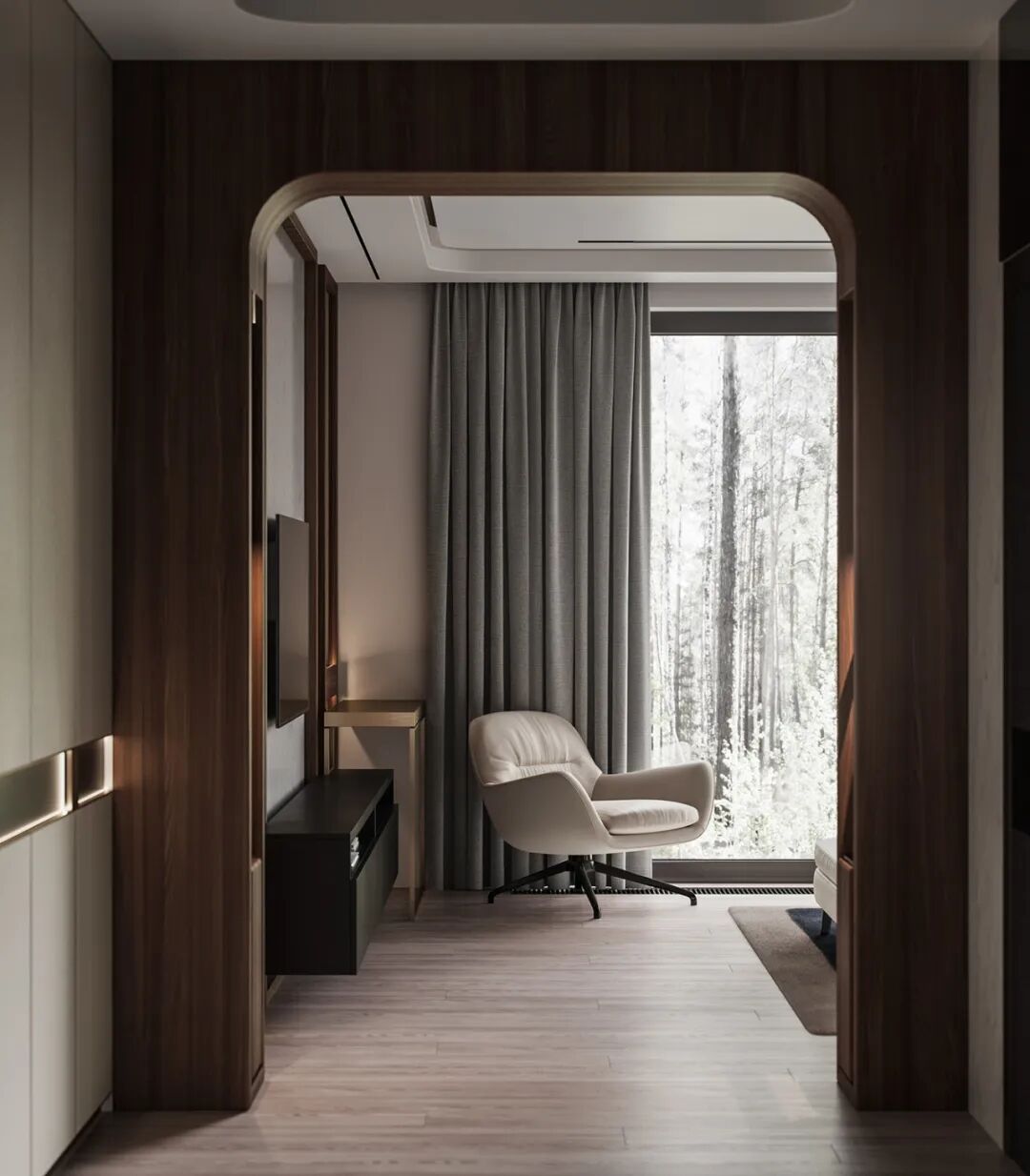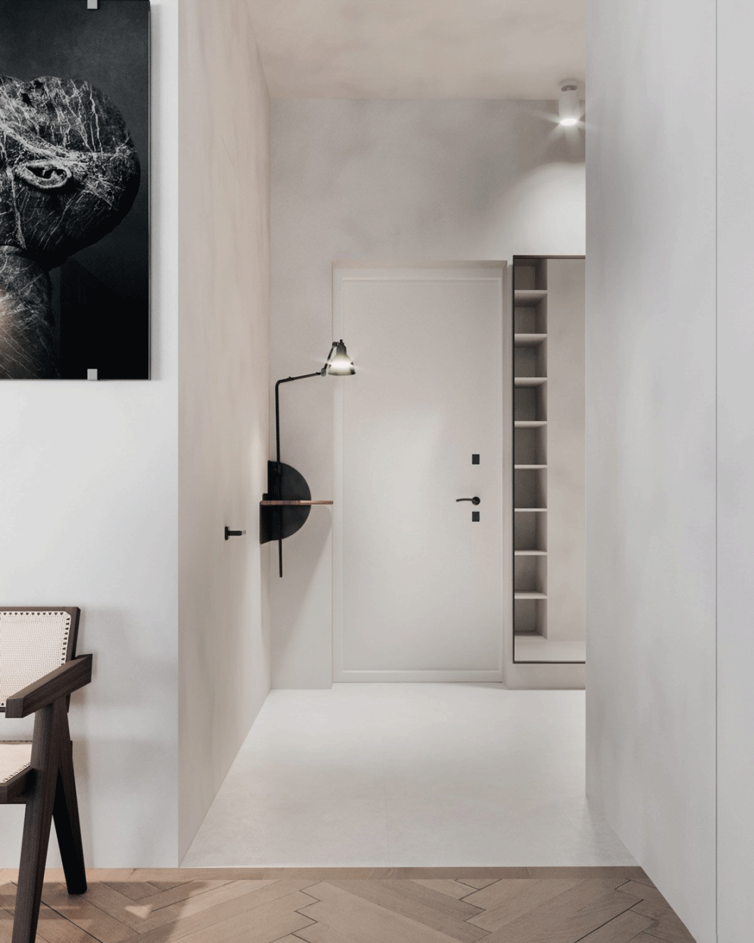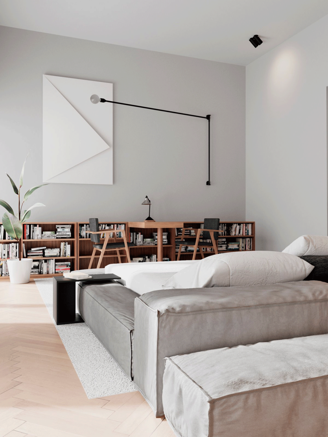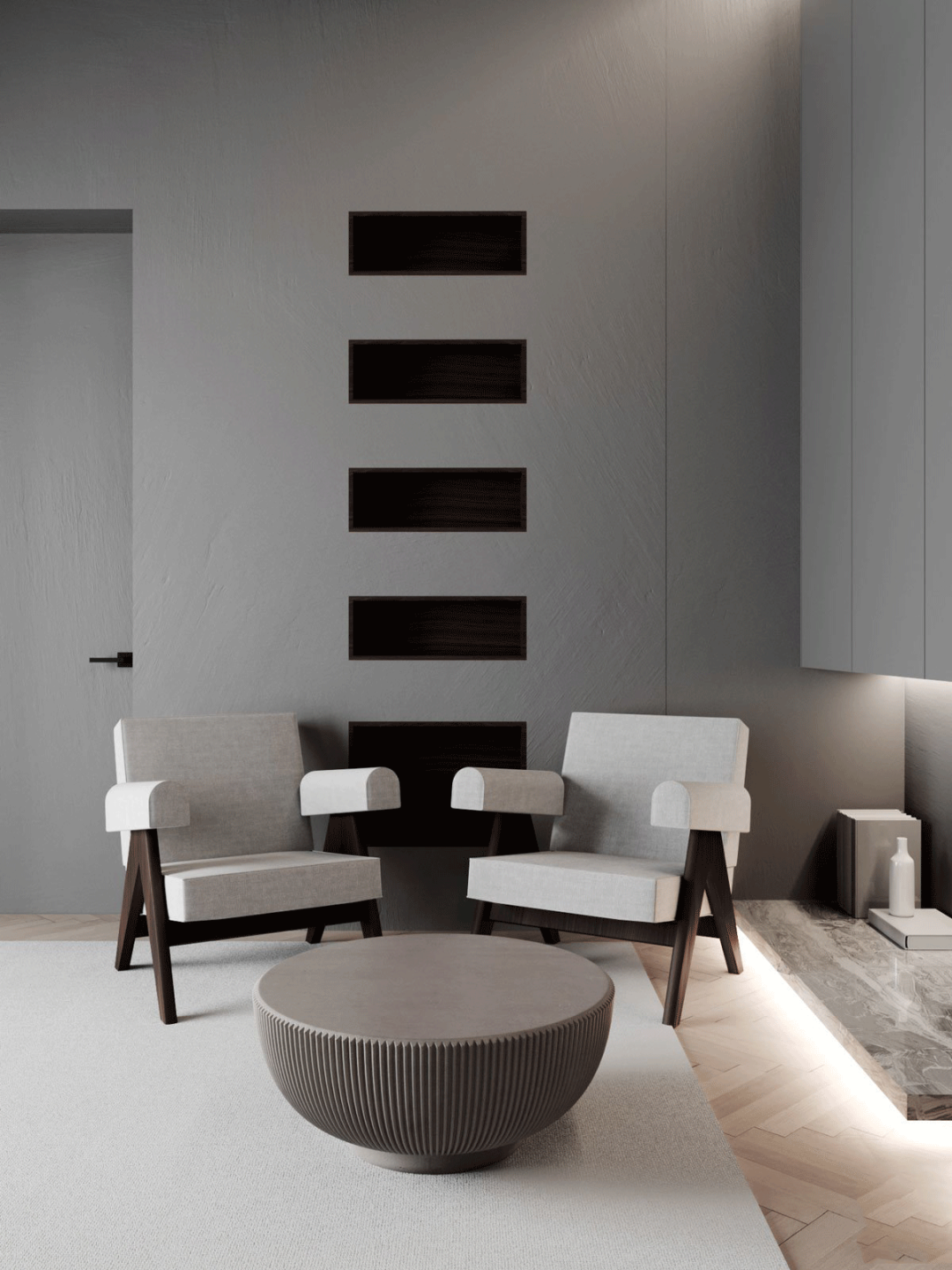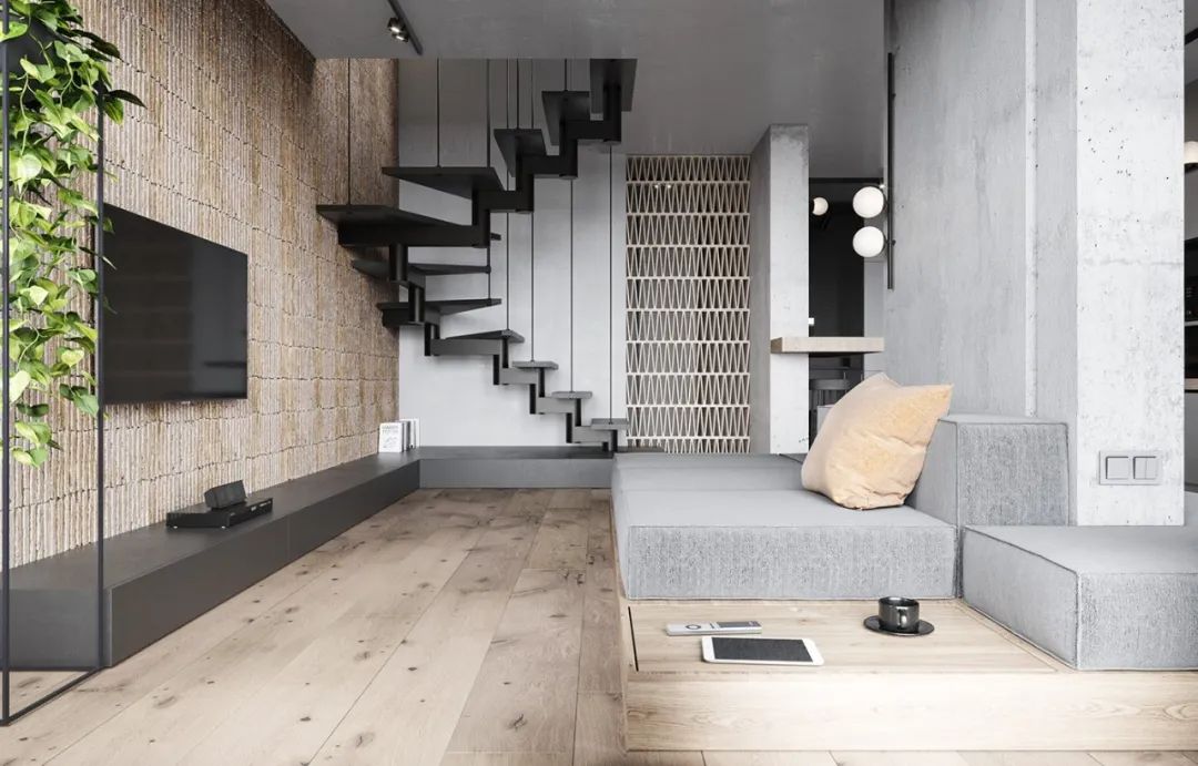 高级灰搭配柔和木色调,辅以质朴不失精巧的隔断设计,营造了一个细节与层次感并重的简约空间。