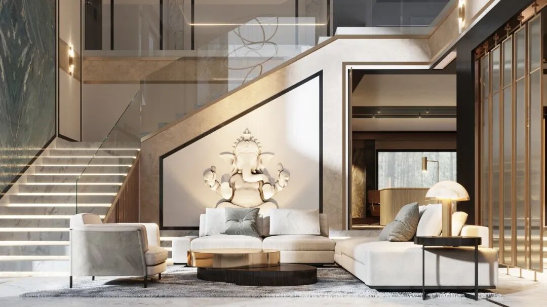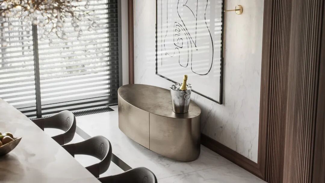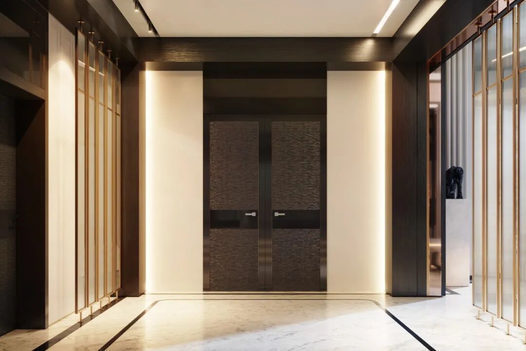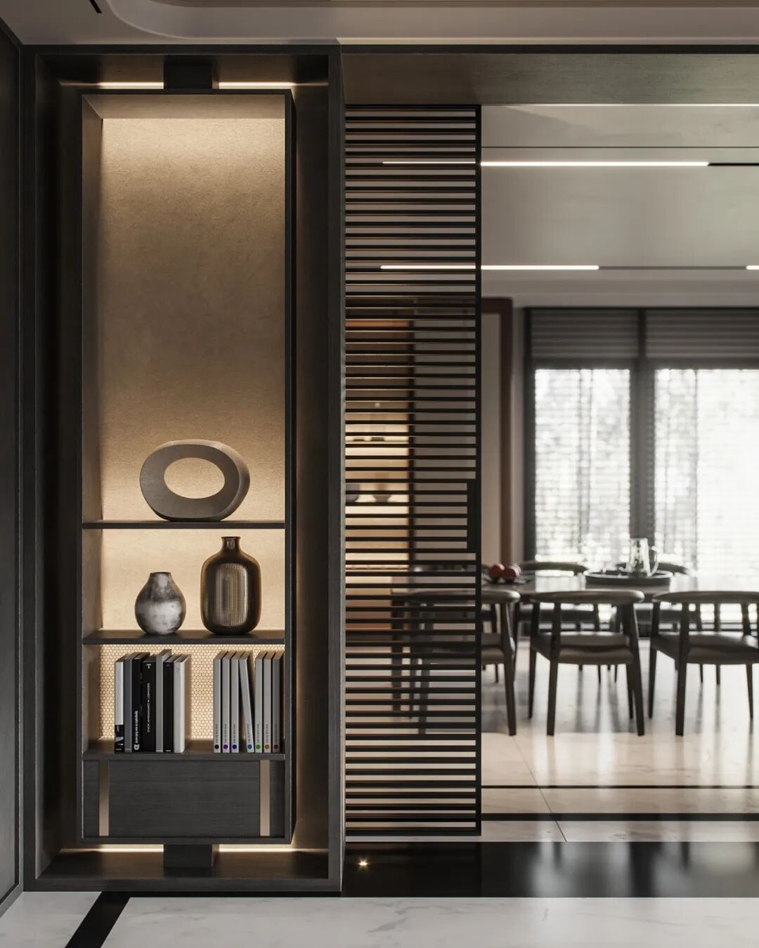 有别于前两个项目的简约质朴,这个住宅整体风格奢华高调,而隔断设计同样美感与功能兼顾。