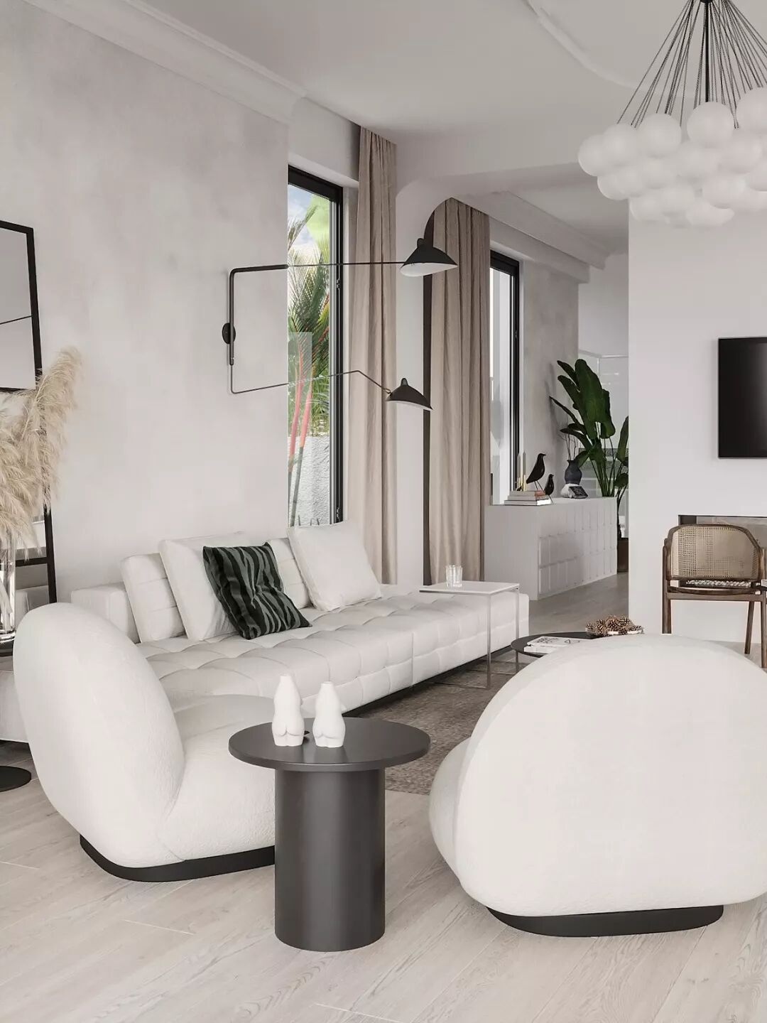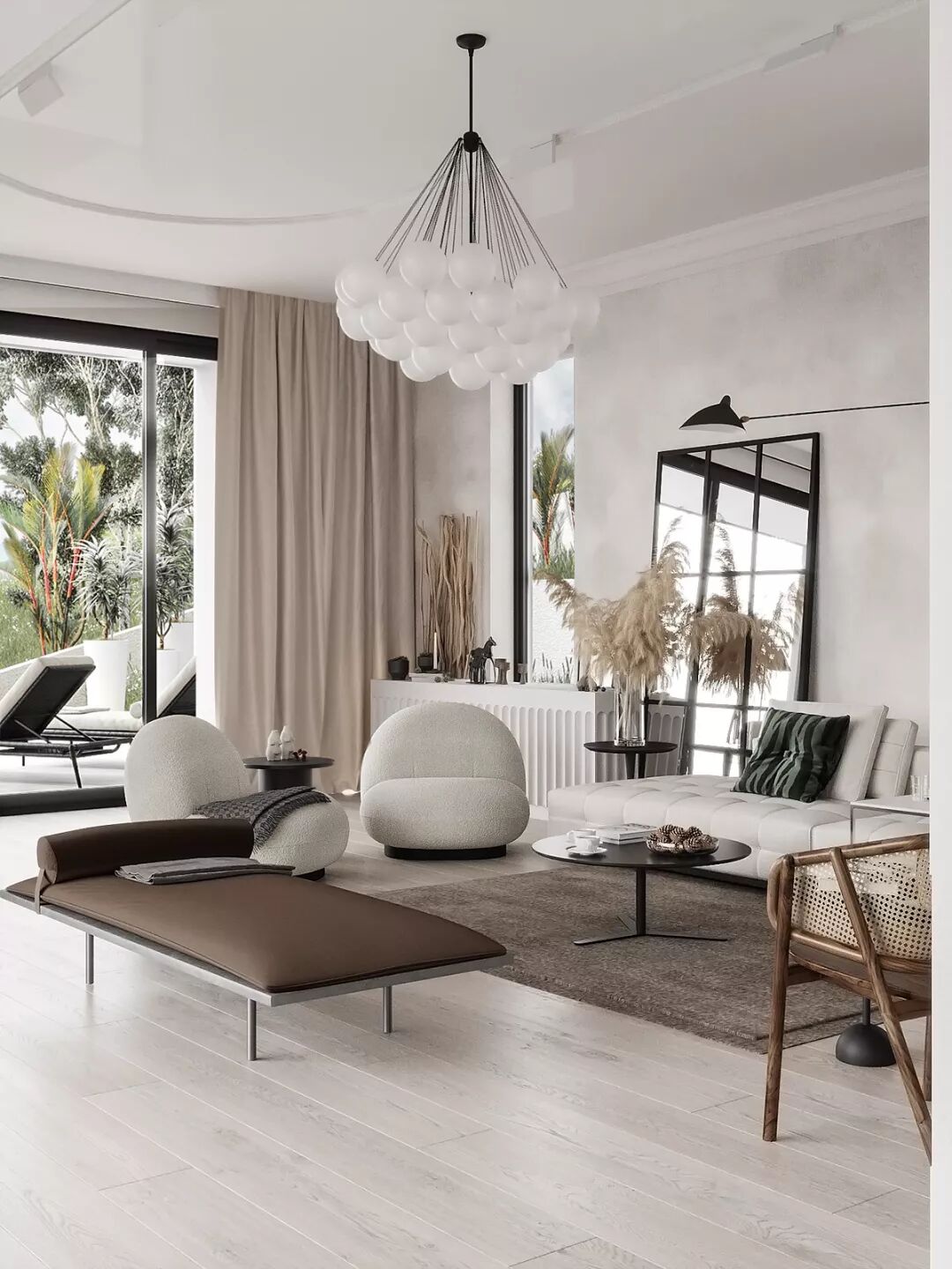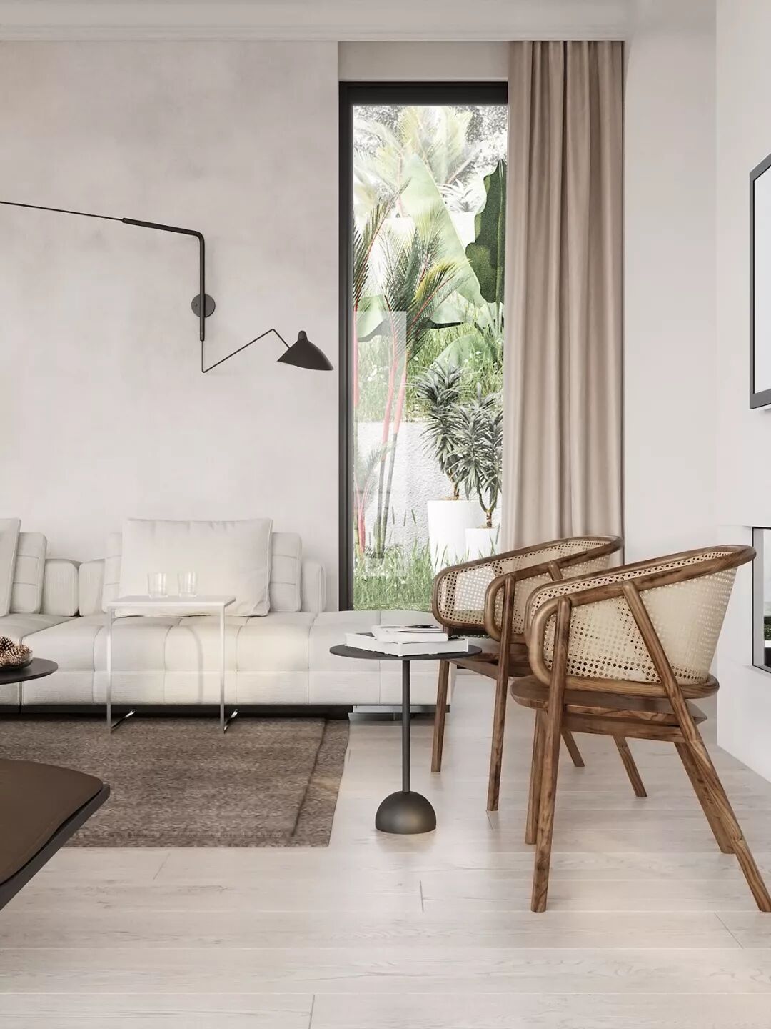 大面积的落地窗有利于阳光进入纯白的室内,构建出优美律动的光影世界。