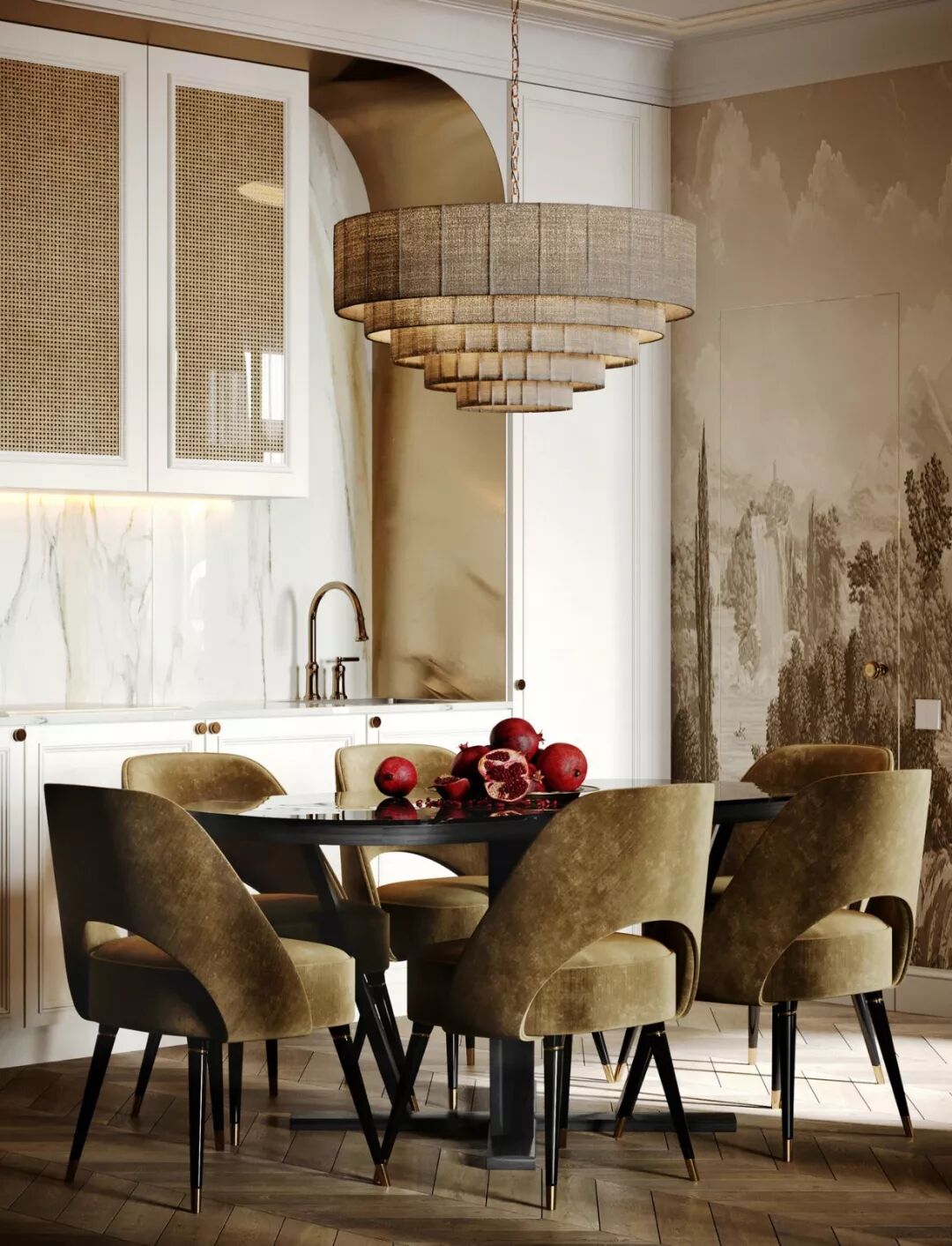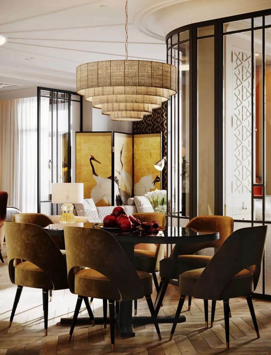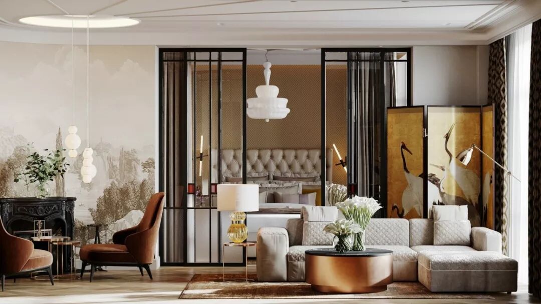 当复古与现代轻奢相遇,则是无与伦比的视觉盛宴 。奢华亮眼的装饰设计,为向来低调的复古风格添加了不一样的神采,吸睛度满分。