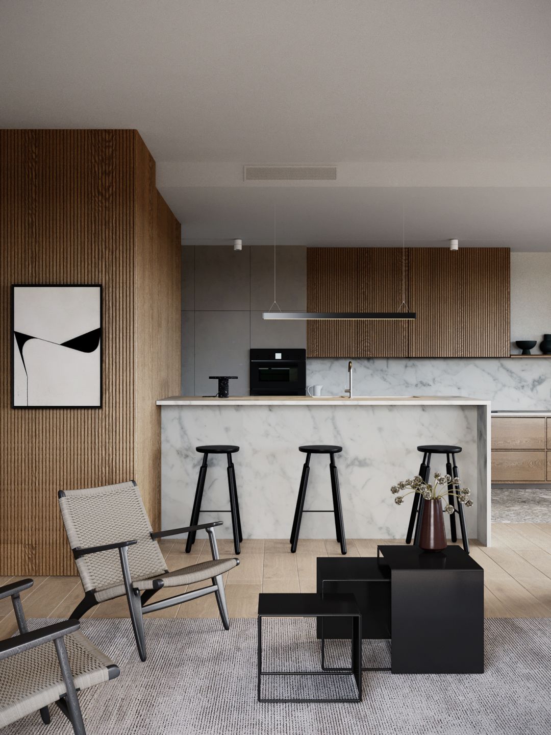 木条墙散发着“时间”独特的魅力, 自带复古特质 ,同时增强了空间的纵深感。