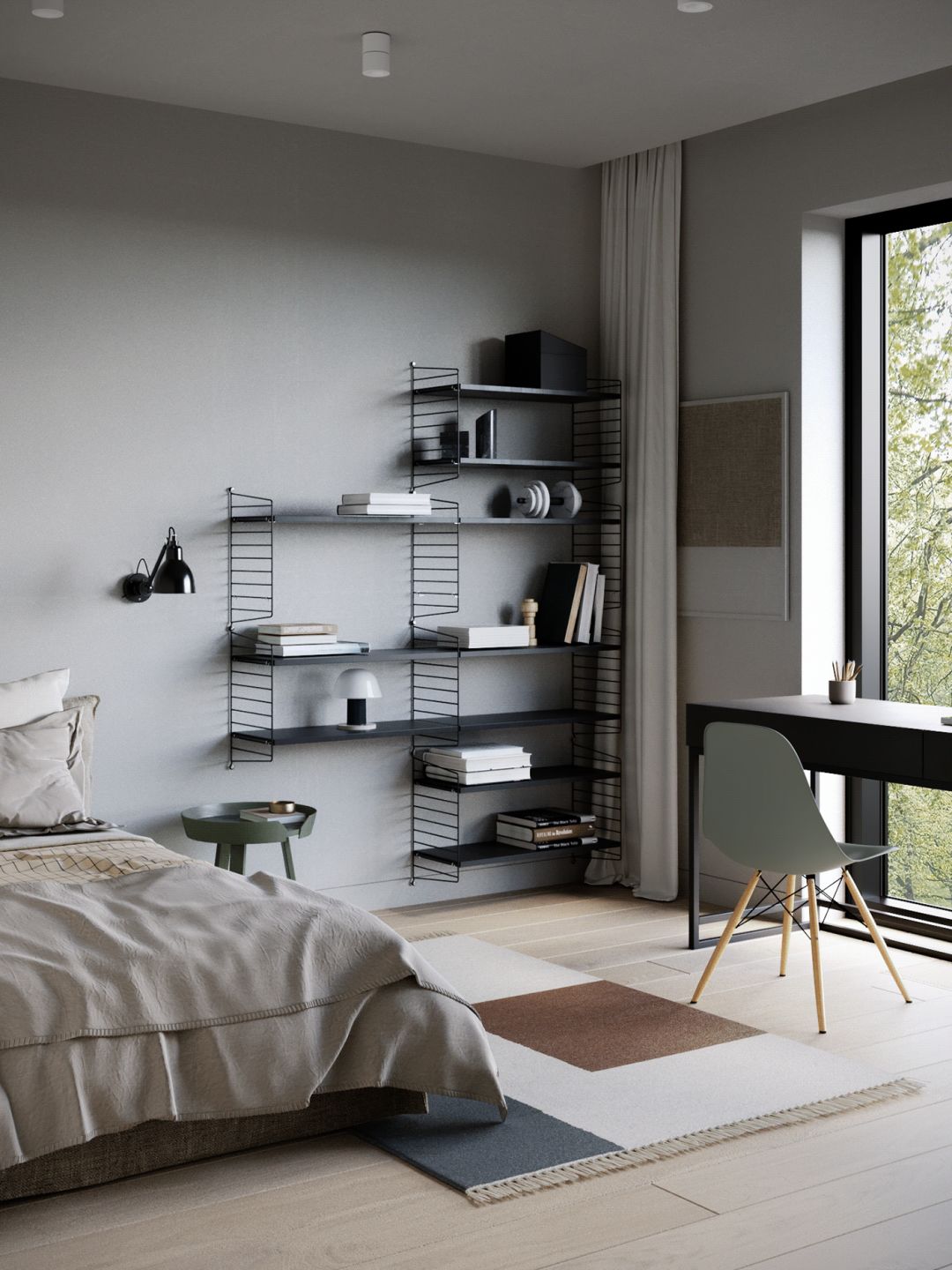 另一间卧室的设计同样简洁现代不失复古韵味。