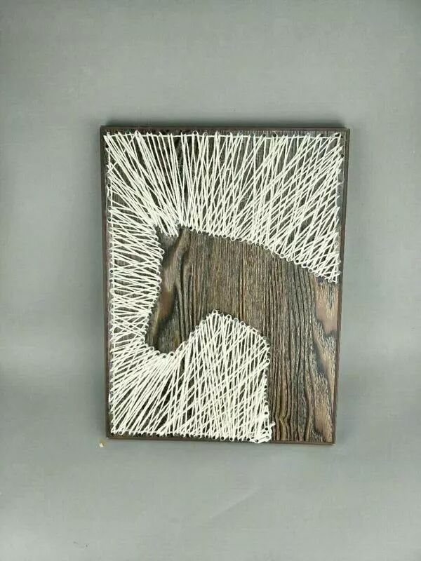 准备一个深色纹理木板,用钉子在木板上钉上简易的图案轮廓,顺着轮廓外围随意绕线,让麻绳均匀覆盖木板。一幅时尚简约,又创意满满的装饰画就搞定啦~
