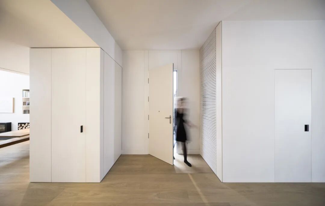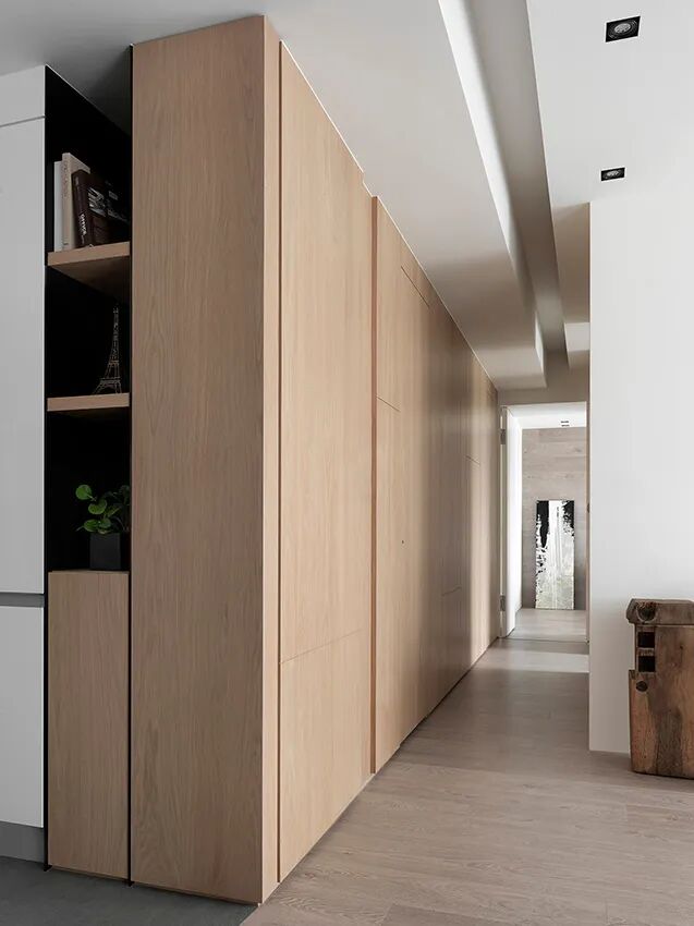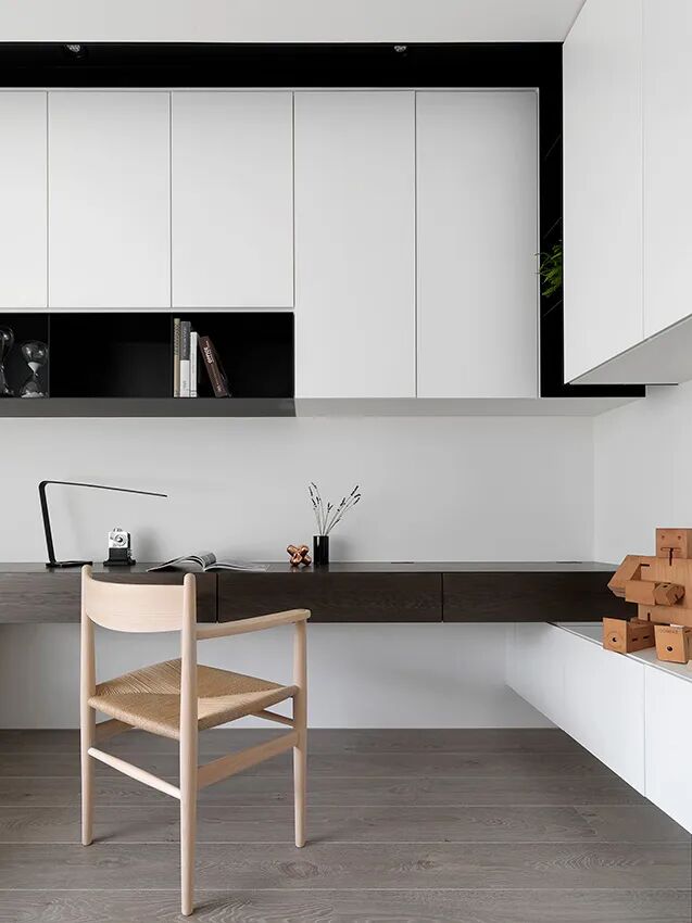 极简设计往往蕴含着更多的功能与美学,如上图可开可合的橱柜设计,让空间既能保持整体性,又能满足使用需求。