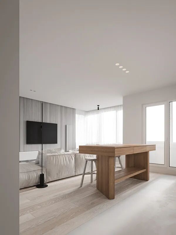 对建筑自身条件以及采光的尊重也是极简设计的一大重点,朴实无华的装饰带给人心旷神怡的感受。