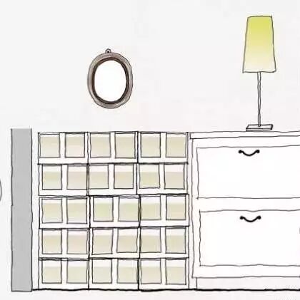 没有做专门的鞋柜或鞋架,而选用宜家的白色布艺鞋盒。自然叠放。