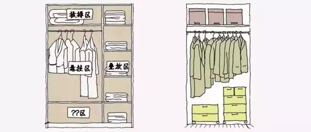 现在终于明白,为什么以前学习日本供应商的衣柜(上图右侧案例)很少配置华丽的构件,而只是简简单单的一块隔板,抽屉另购(带轮子)的,这种简单无比却非常实用的衣柜,才是真正实现最高空间利用效率!