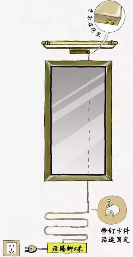 上个月,终于从某宝淘了一款热卖的镜前灯,颜色选择和镜框接近的青古铜色,最大的特点是自带开光。因为原来没有预设电位,所以选择走明线。