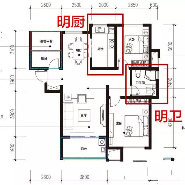 厨房和卫生间都要有窗户,光线条件比较好。