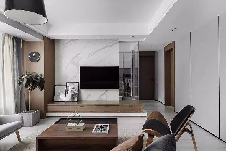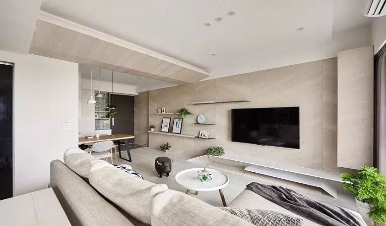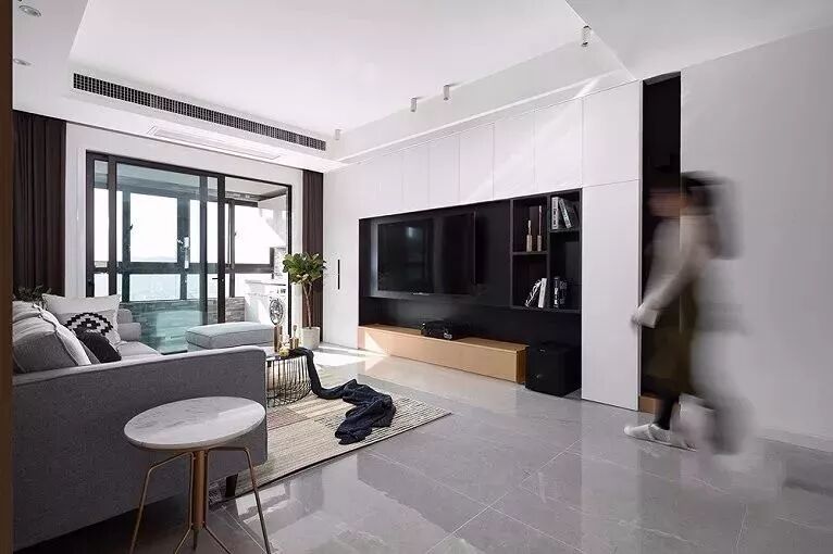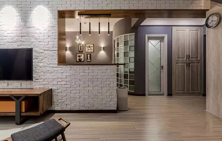 硬装非对称,指的就是在装修的时候就把电视墙装成非对称的情况了,这个类型通常都是因为功能需求或则户型限制而这样做的。