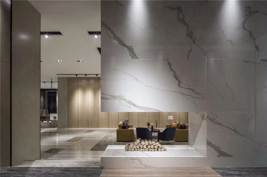 采用这种大规格陶瓷板铺贴,纹理效果一气呵成,意象万千,富于变化。设计师还可以像裁缝裁剪布料一样,通过切割设计变换出多种规格,适用于不同空间,演绎更灵动百变的空间诉求。