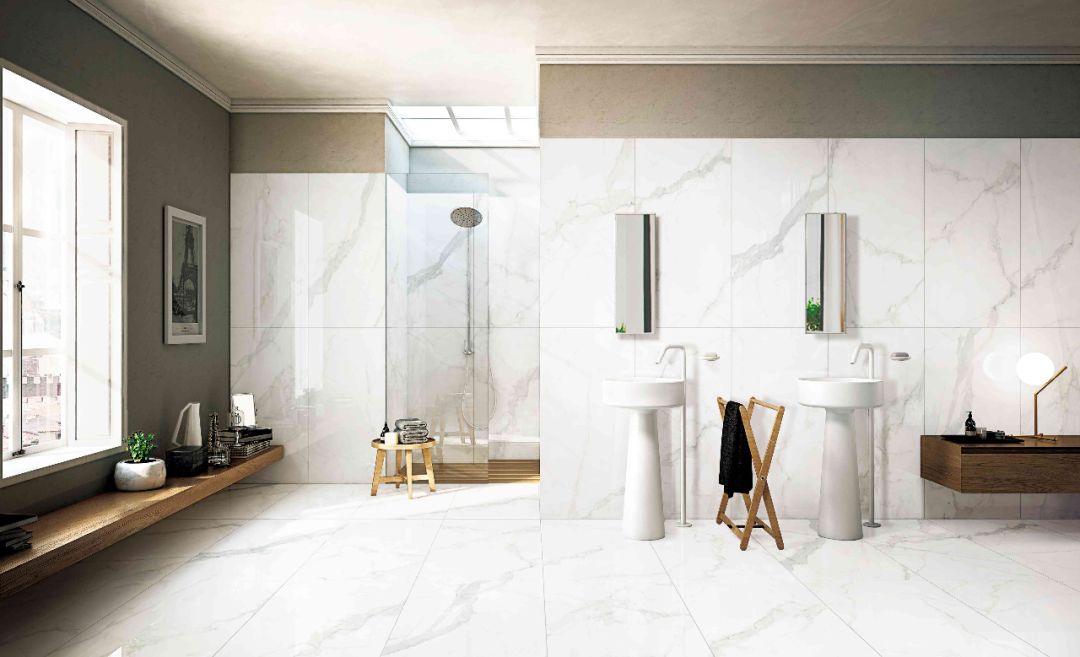 考虑到传统的“大砖”规格已难以满足当下审美需求,很多陶瓷品牌推出大规格系列产品,比如我们前几期介绍过的蒙娜丽莎罗马超石代,具有2400×1200mm的超大规格设计。