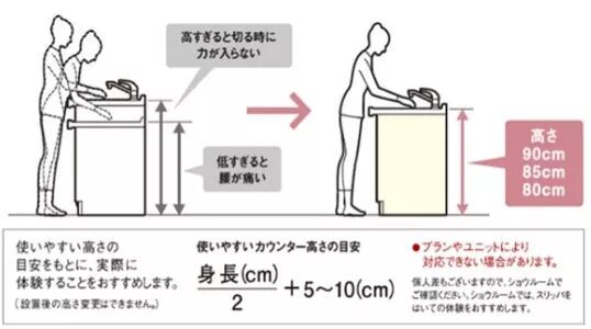 舒适的橱柜高度=身高/2+5~10 (cm)